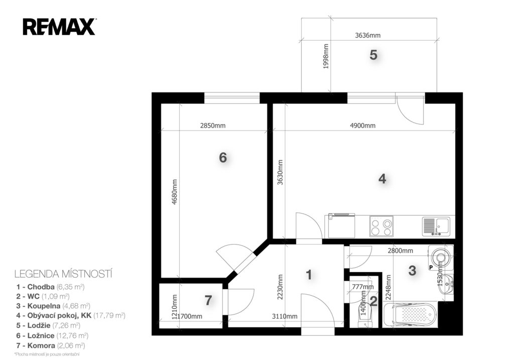- Dispozice bytu: 2+kk