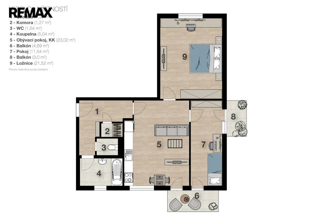 - Dispozice bytu: 3+kk