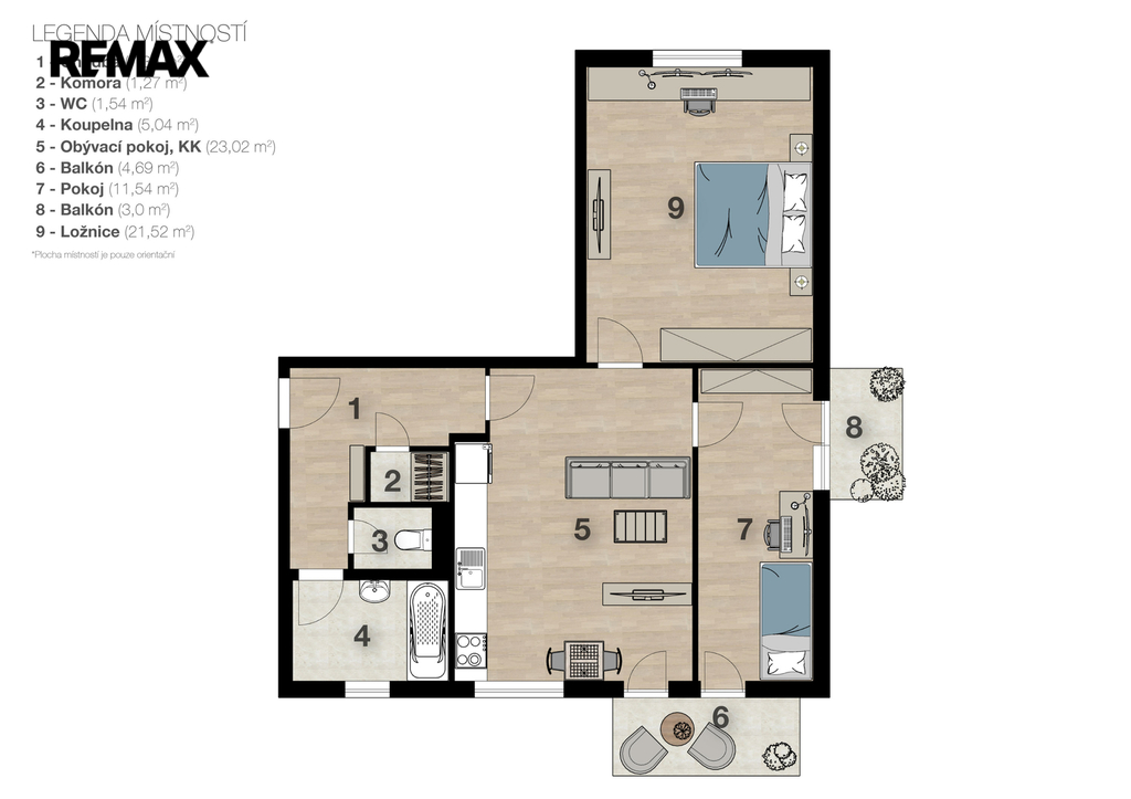 Byt se nachází ve 3. (posledním) patře domu bez výtahu, což zajišťuje maximální klid – žádní sousedé nad vámi a pouze jeden vedle vás. Díky umístění v domě i promyšlené orientaci nabízí dostatek soukromí a krásné otevřené výhledy do okolí. Velkou předností je perfektní orientace na tři světové strany. Obývací pokoj je orientovaný na jih, což zajišťuje dostatek světla po celý den, dětský pokoj je situovaný na východ a jih a hlavní ložnice na sever, což oceníte zejména pro klidný spánek. Mezi dětským pokojem a ložnicí je navíc dostatečně silná zeď, která zajišťuje akustický komfort, takže se jednotlivé pokoje vzájemně neruší. Interiér bytu prošel kompletním faceliftem, najdete zde nové podlahy, nové omítky a moderní kuchyňskou linku kompletně vybavenou spotřebiči se zárukou 2 roky. Samozřejmostí je podlahové vytápění, bezpečnostní vstupní dveře a praktická dispozice doplněná o samostatnou toaletu. Velkým benefitem jsou dva balkony, které přirozeně rozšiřují obytný prostor a nabízejí ideální místo pro ranní kávu nebo večerní relax. Byt nabízí také prostornou koupelnu s oknem, která zajišťuje přirozené světlo i větrání, a dále velkou komoru přímo v bytě. K bytu náleží prostorný sklep a v domě je k dispozici také kolárna. Součástí je nadstandardně velké garážové stání, kam se pohodlně vejde auto i motorka, případně dvě menší auta za sebou. Další parkování je možné i před domem.