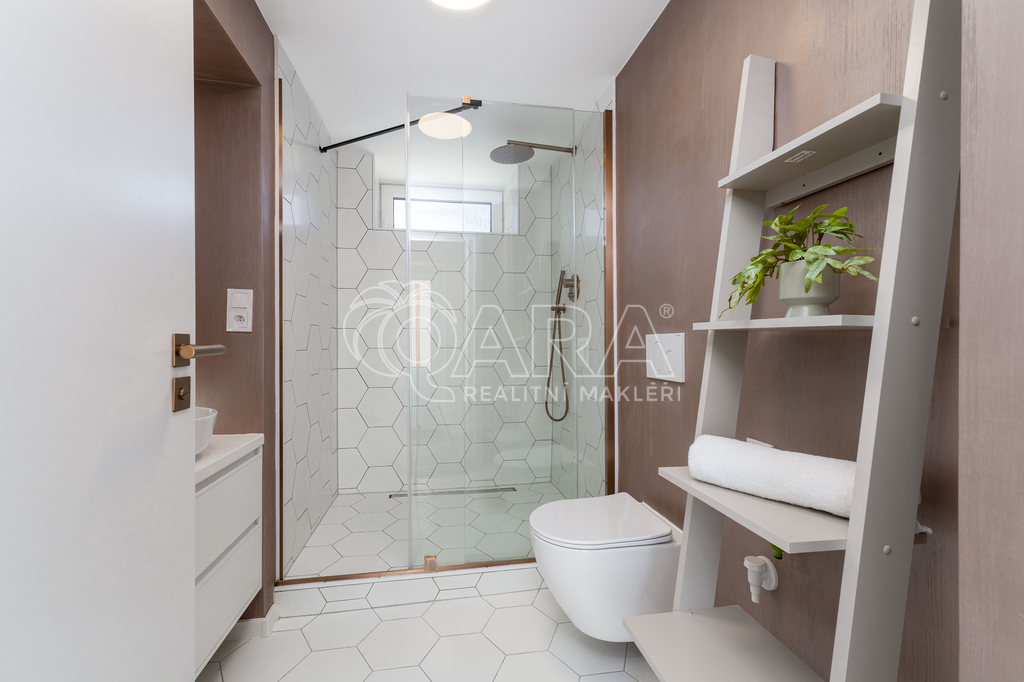 V domě se nachází pouze dvě bytové jednotky, což zaručuje klid a soukromí. K bytu náleží také sdílená zahrada, ideální pro relax i grilování s přáteli.