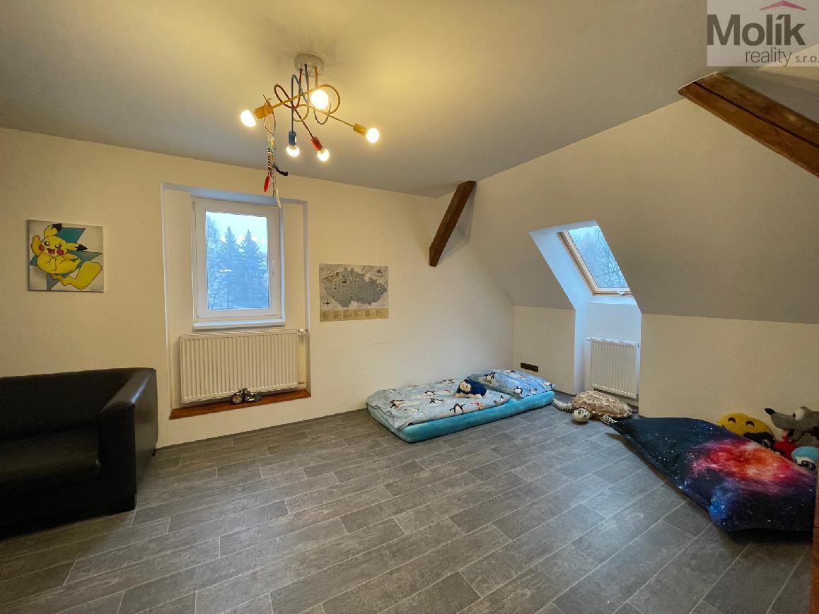 V podkroví je ložnice, dětský pokoj a pracovna + půda.