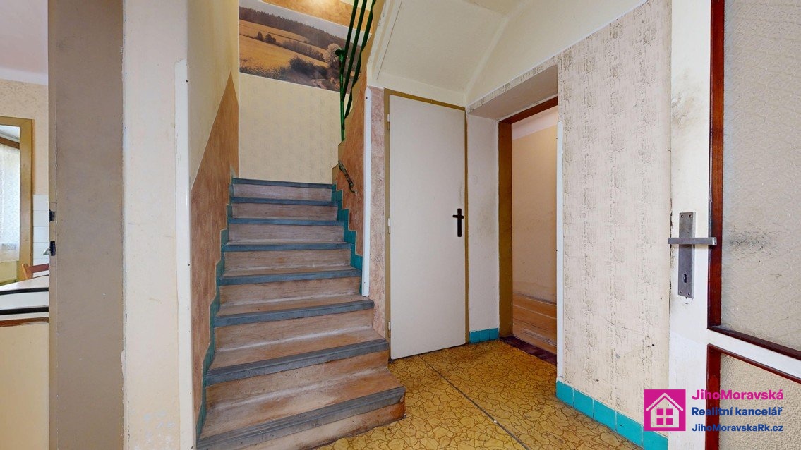 Dispozice domu: 1. nadzemní podlaží: předsíň, chodba se schodištěm, kuchyň, pokoj, chodba, špajz, koupelna s WC, sklad a vinný sklípek.2. nadzemní podlaží: schodiště, chodba, tři pokoje a terasa