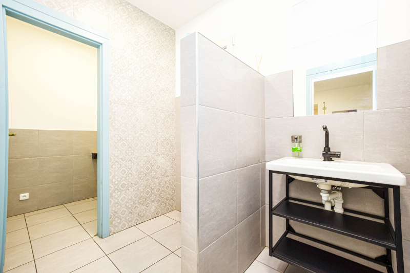 V přízemí se nachází nebytový prostor vhodný pro kavárnu, bistro nebo jiné gastronomické zařízení. Provozovna disponuje kuchyní s vlastní skladovací místností, oddělenými toaletami pro hosty a bezbariérovým WC. Velkou výhodou je zadní vstup pro zásobování, který nenarušuje chod provozu. Před domem se nachází venkovní terasa ukrytá pod pergolou, ideální pro příjemné venkovní posezení. Nechybí ani menší prostor pro dětský koutek, který zvyšuje atraktivitu podniku pro rodiny s dětmi.