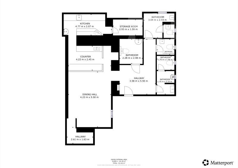 1. NP - nebytový prostor (101 m²)