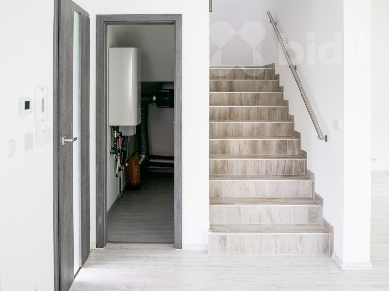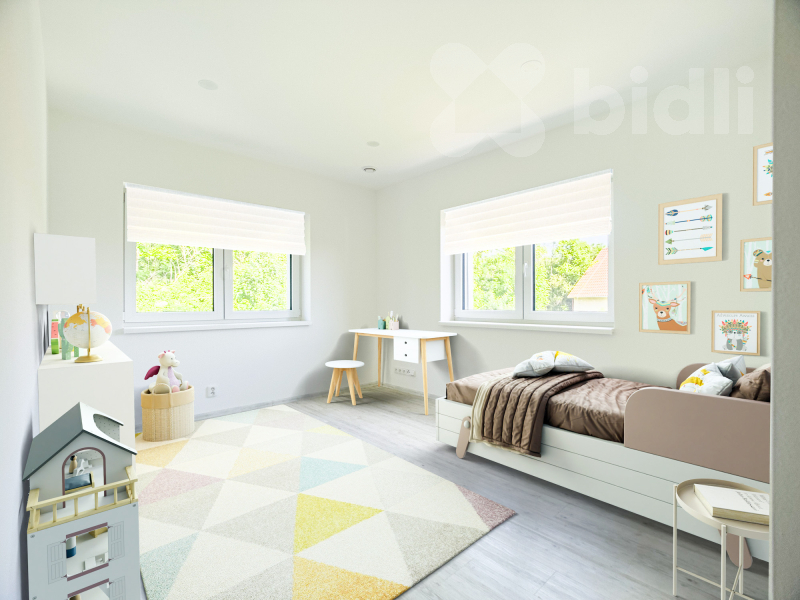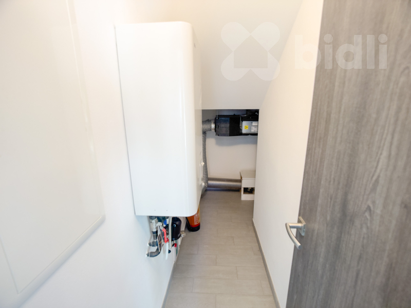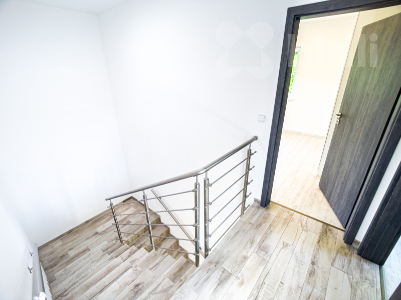 Dům je okamžitě připravený k nastěhování, vybavený je kuchyňskou linkou a zařízenými koupelnami v nadčasovém designu. Okna kryjí elektronicky ovládané venkovní žaluzie.