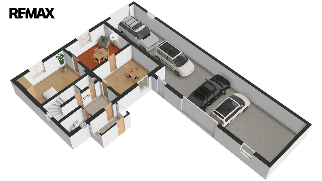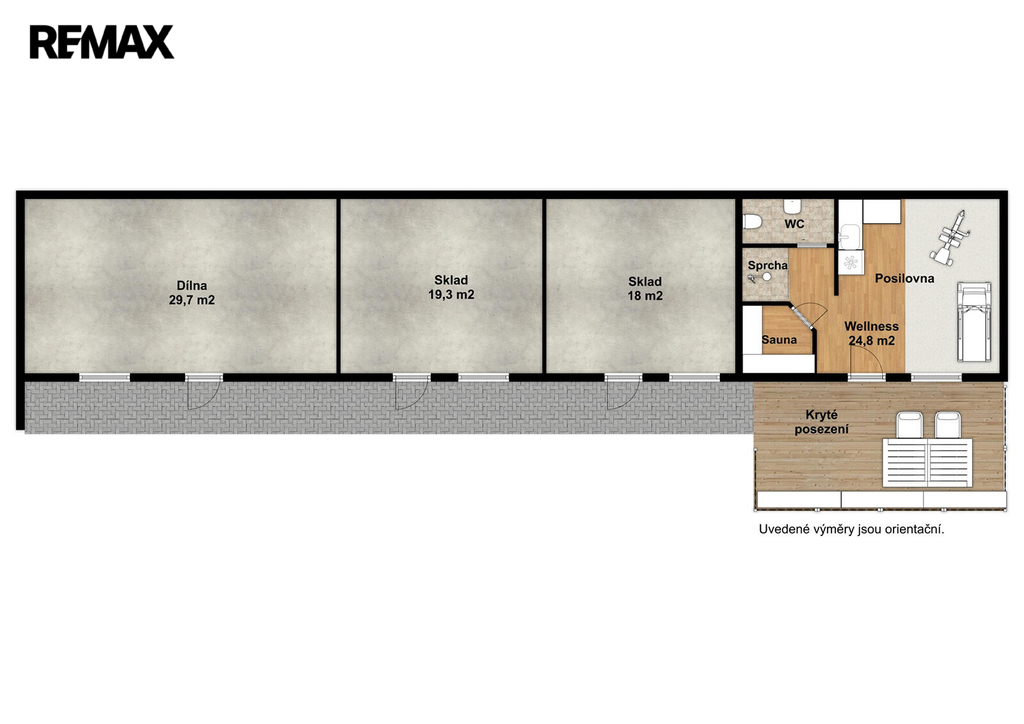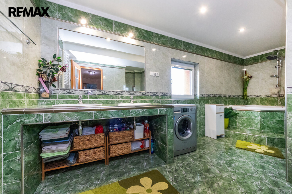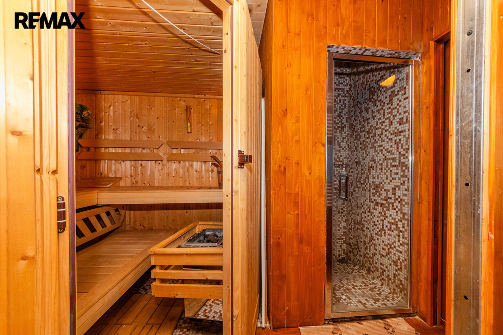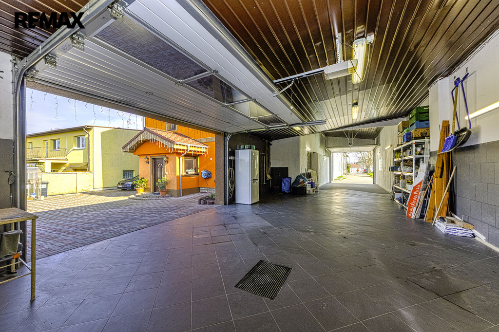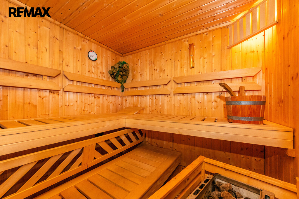 Velkým benefitem je samostatná garáž pro až 4 automobily (106 m²), dále wellness zóna se saunou a posilovnou a tři místnosti vhodné například pro krátkodobý pronájem nebo podnikání. Tato část má vlastní vytápění elektro kotlem.