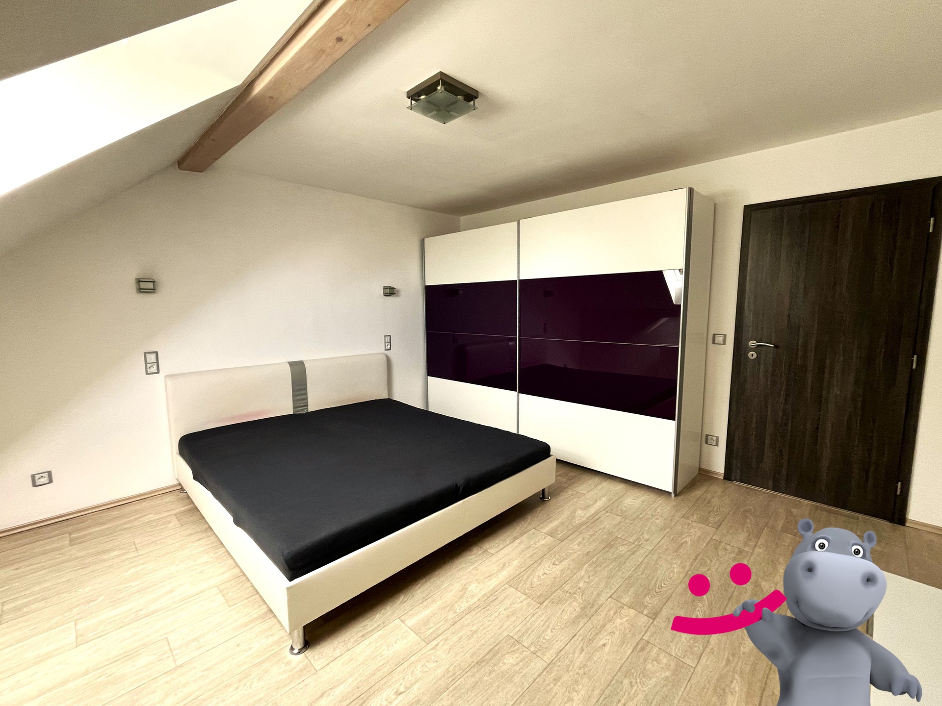 Velká hala v přízemí, sauna, terasa v patře, obytná část vestavěná skříň (5,2 m).