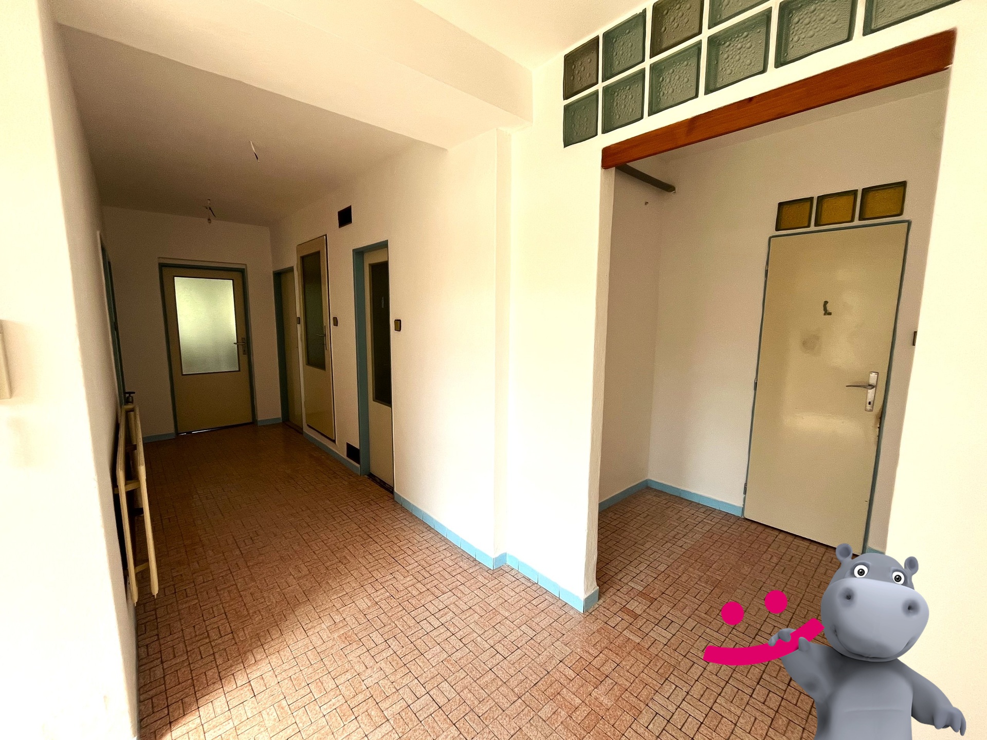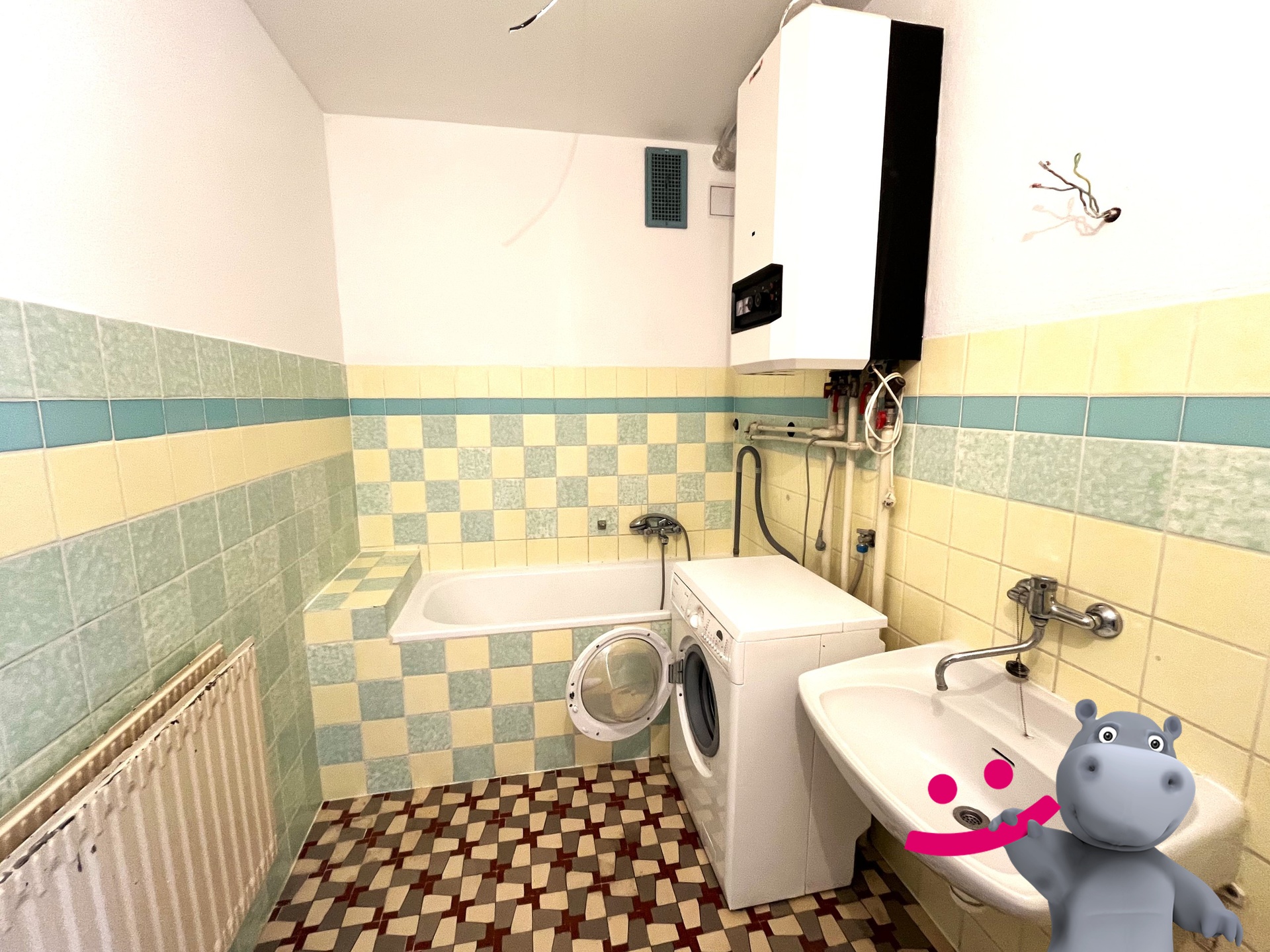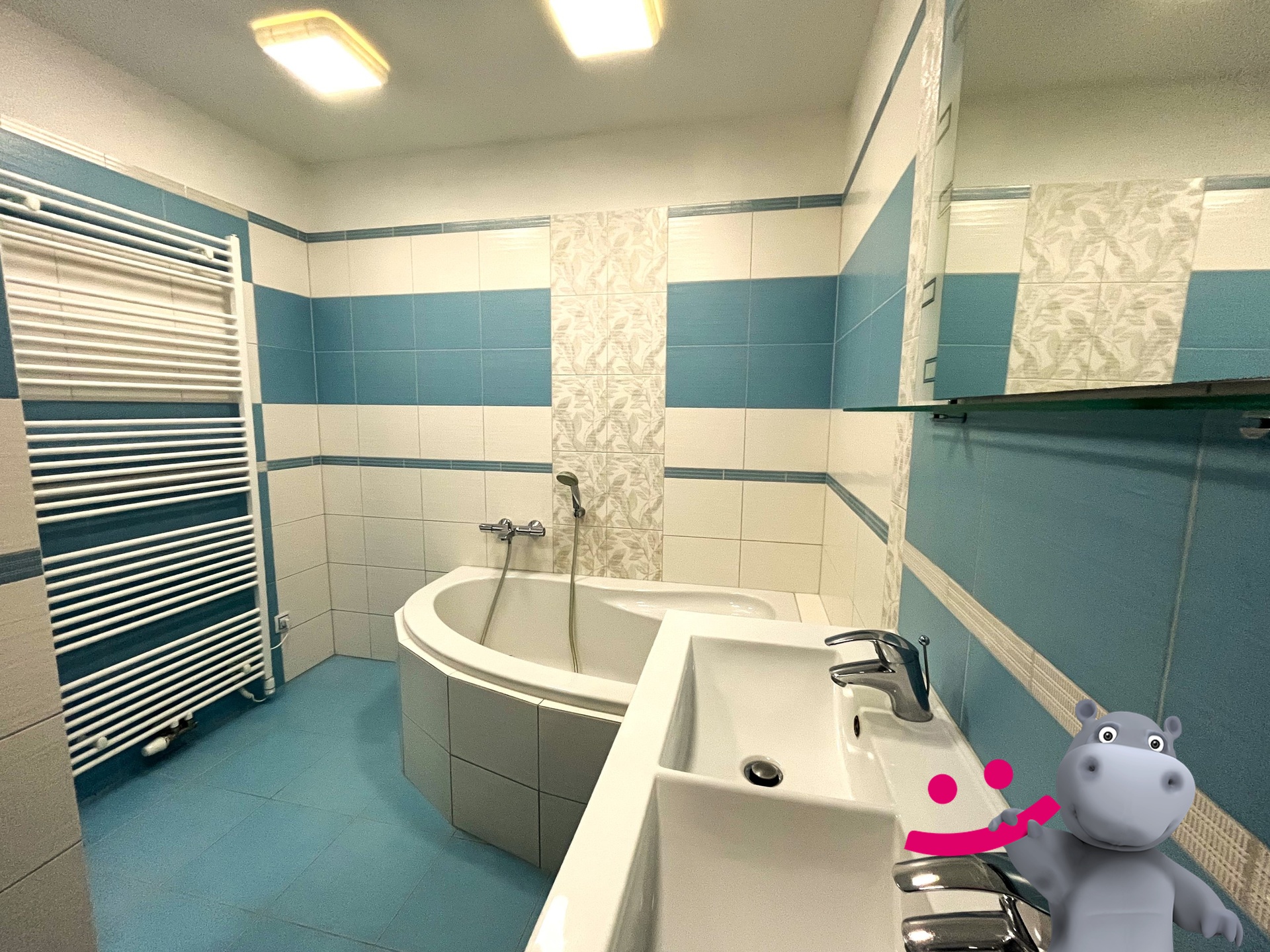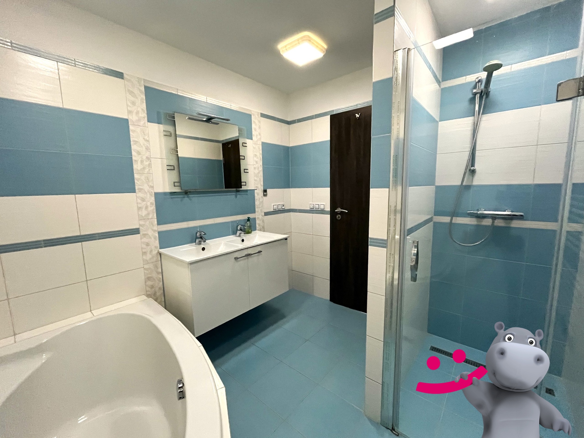 Koupelna s vanou a umyvadlem, samostatné WC s umyvadlem z 80tých let čekají na modernizaci, stejně jako případná výměna kuchyňské linky a nové podlahové krytiny. Elektřina je v mědi a byt má nové sádrokartonové podhledy.