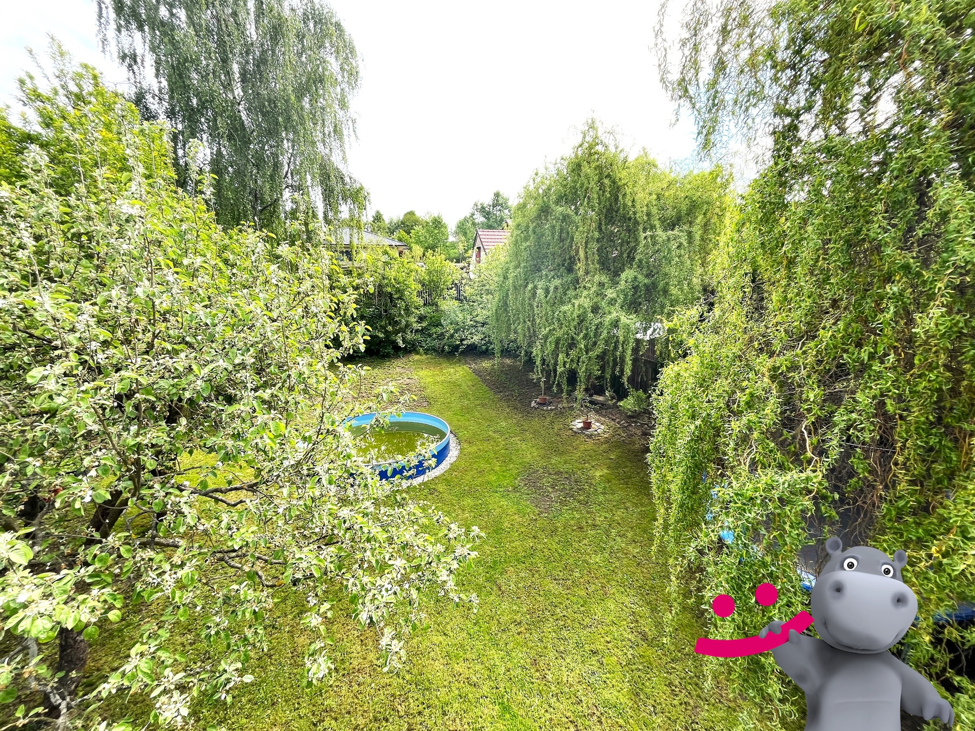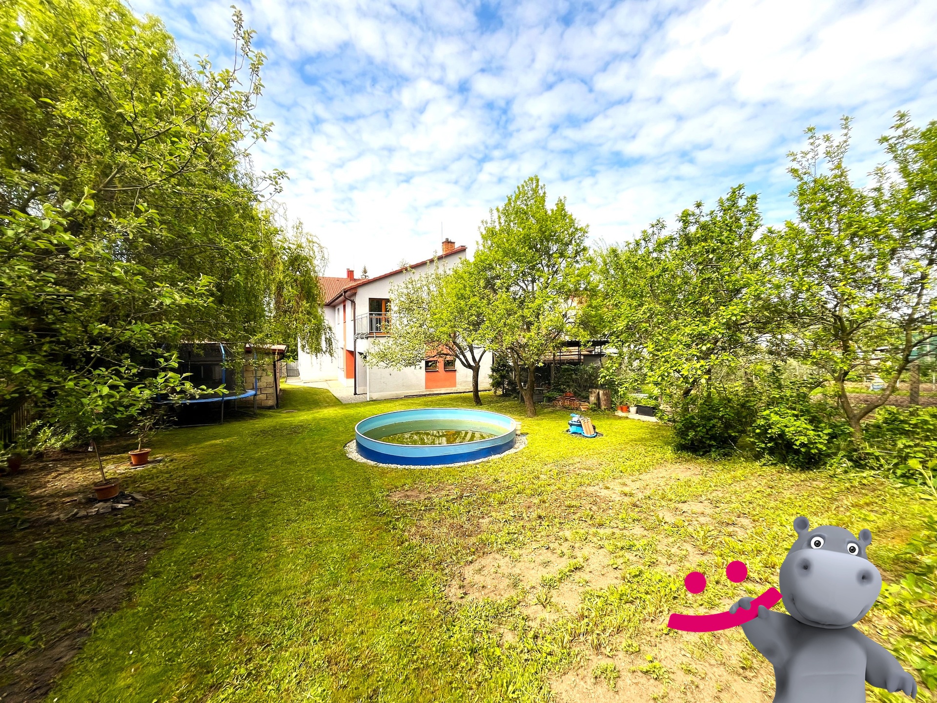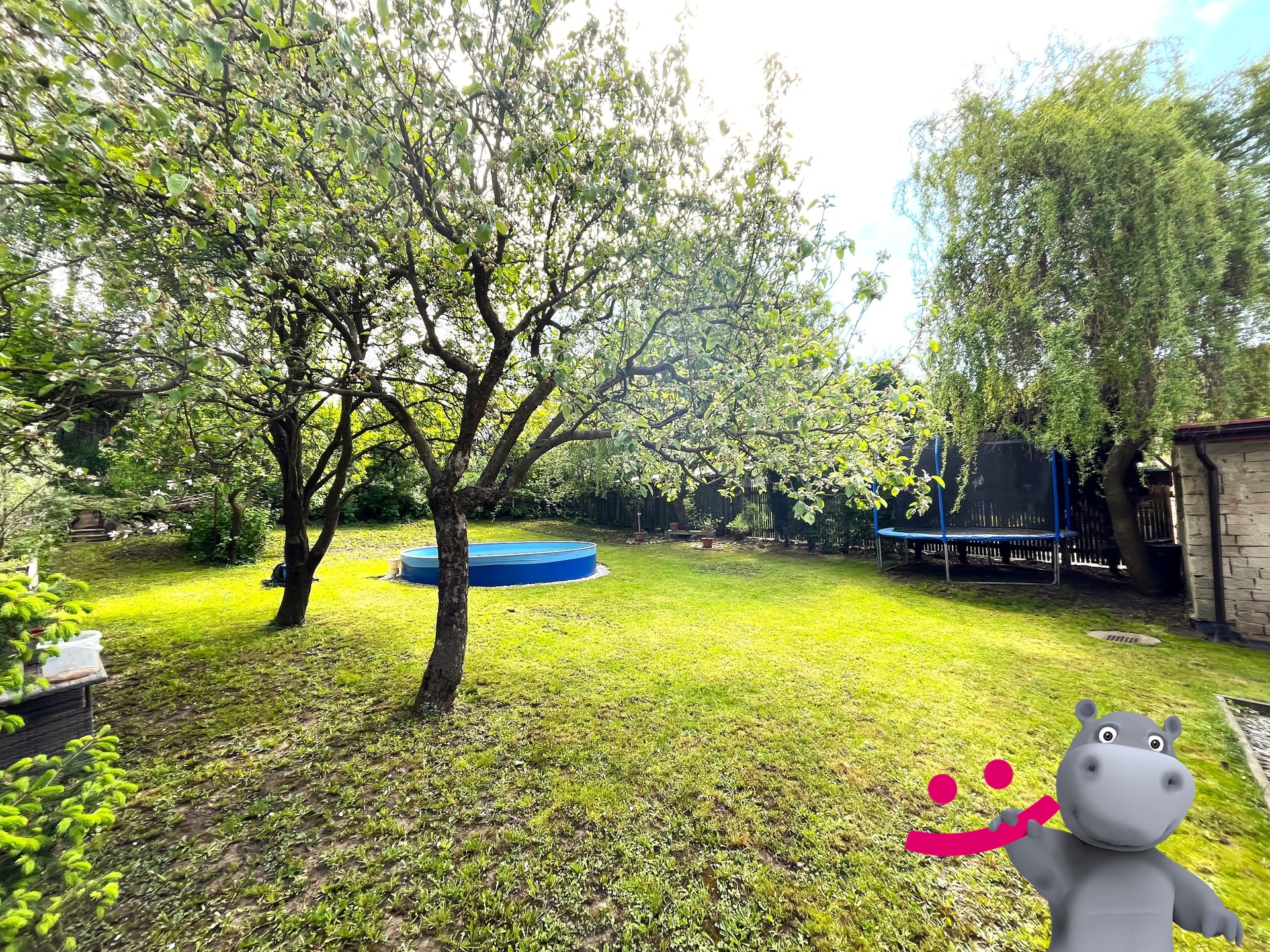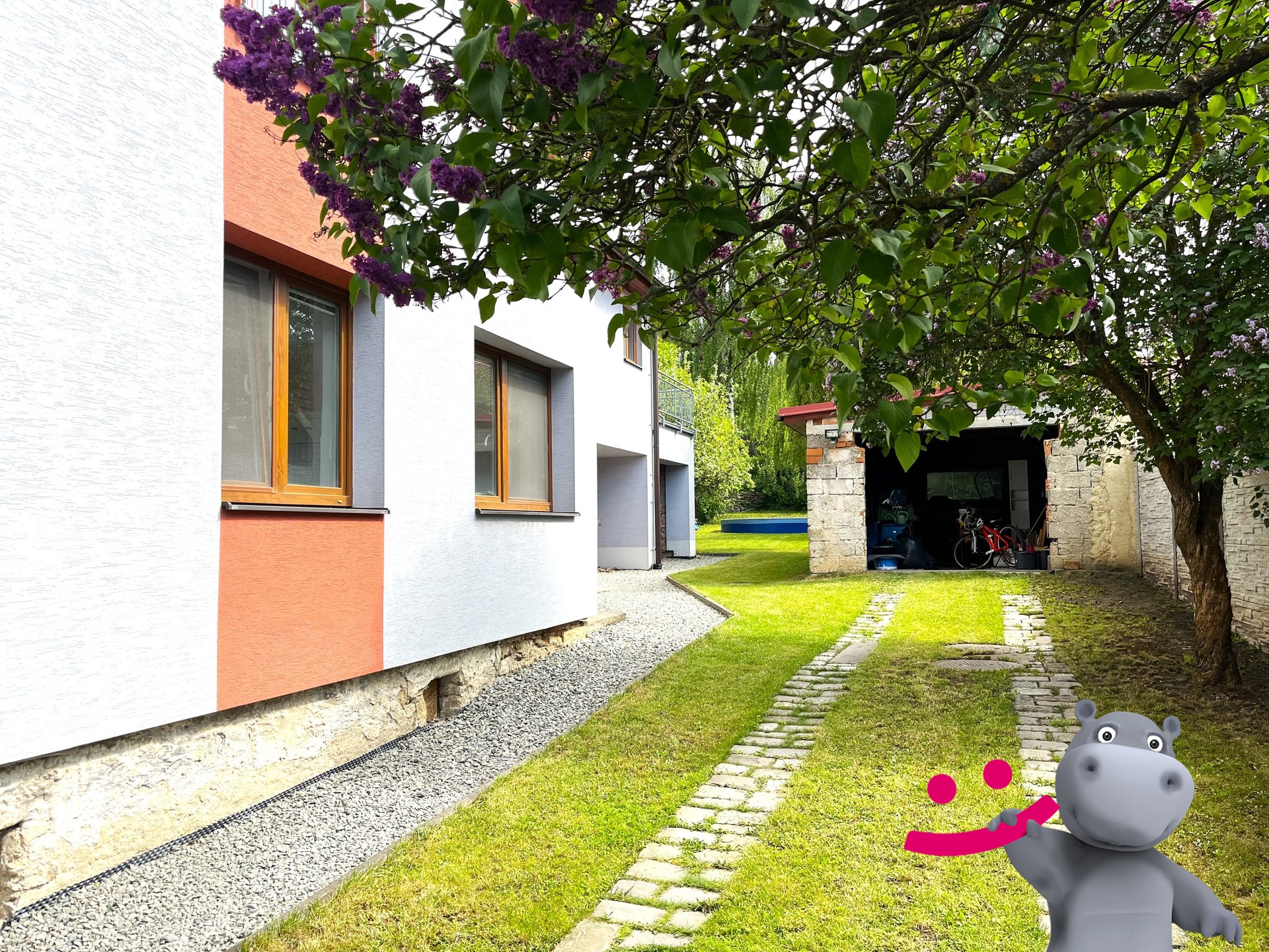 Na pozemku se dále nachází prostorná garáž s dílnou (38m2), sklad, bazén, ideální velikost zahrady s ovocnými a okrasnými stromy, studna.