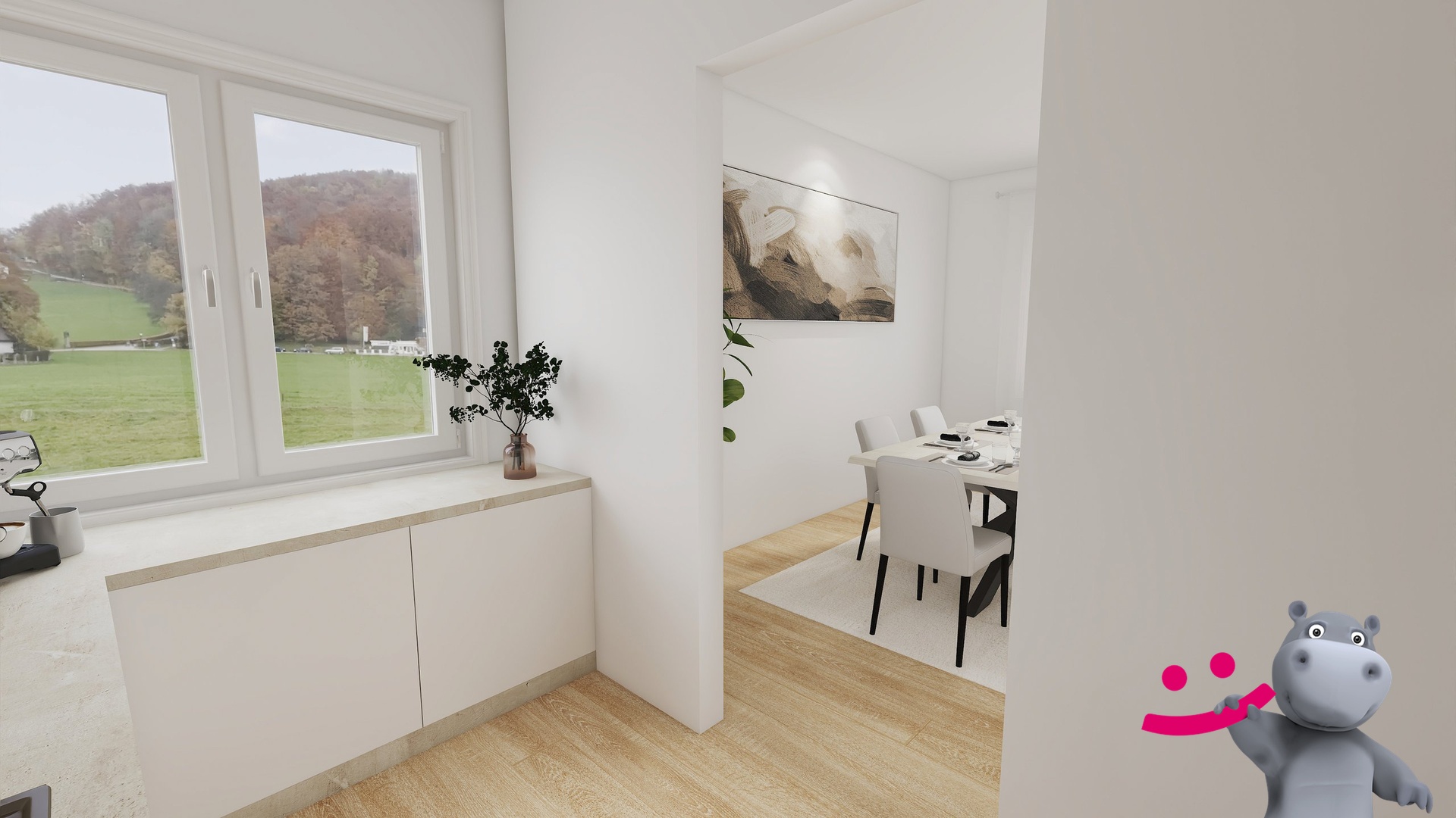 průchozí je kuchyně s jídelnou, navazuje obývací pokoj. Tyto dva pokoje lze spojit na velkou místnost 36 m2 a využít např. k podnikání. Ložnice a další pokoj jsou samostatné.