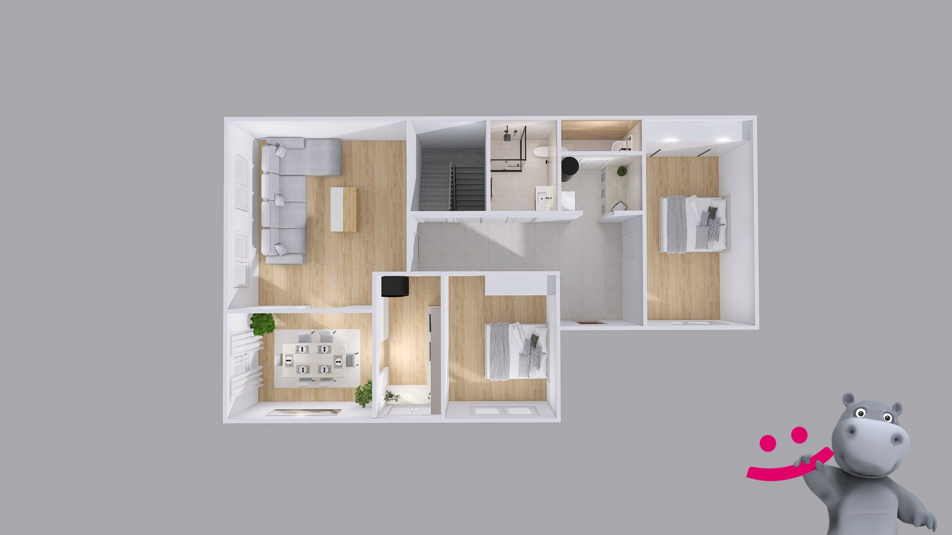 2. BJ v patře (2012) nabízí dispozice 3+KK s možností 4+KK doděláním pouze jediné příčky v dětském pokoji (145 m2).