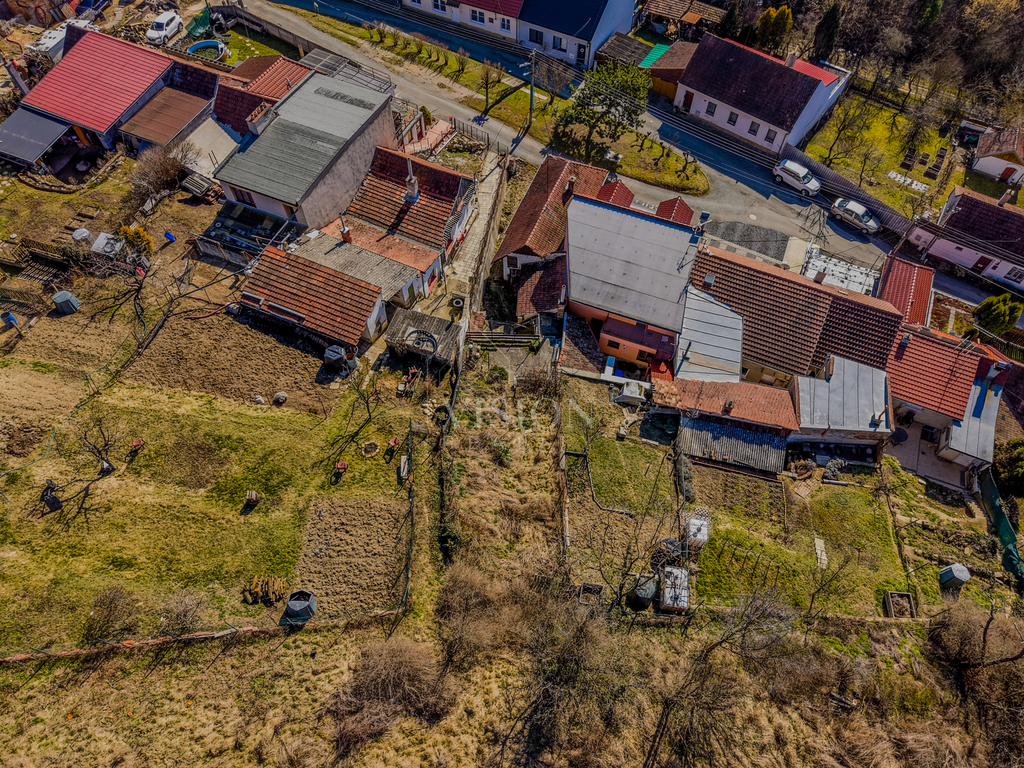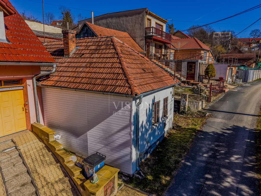 Do domu je přístup přes dvorek, který nabízí klid a soukromí. Ze dvorku vedou schody na zahrádku umístěnou ve svažité části pozemku. Na dvorku se nachází také sklípek, který může posloužit pro uskladnění věcí a potravin nebo jako menší vinotéka. Lze ji ale také přestavit na další obytnou část a rozšířit tak možnosti celého domu. Nemovitost je napojena na elektřinu, vodu a kanalizaci.