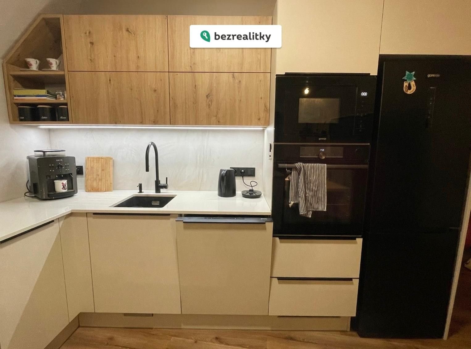 Interiér je řešen s maximálním důrazem na detail – veškerý nábytek byl vyroben na míru u firmy Gorenje včetně spotřebičů.