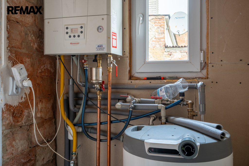 Dům je vytápěn plynovým kotlem, ohřev vody zajišťuje elektrický kotel. K dispozici je také možnost napojení kotle na tuhá paliva.