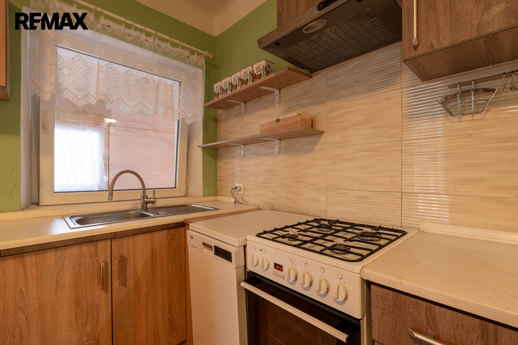 V horní části se nachází prostorná kuchyň, útulný obývací pokoj, ložnice s krbovými kamny, menší neprůchozí pokoj a další průchozí pokoj, který lze upravit podle potřeby. Koupelna je vybavena vanou, sprchovým koutem i toaletou – prostě vše, co potřebujete pro pohodlné bydlení.