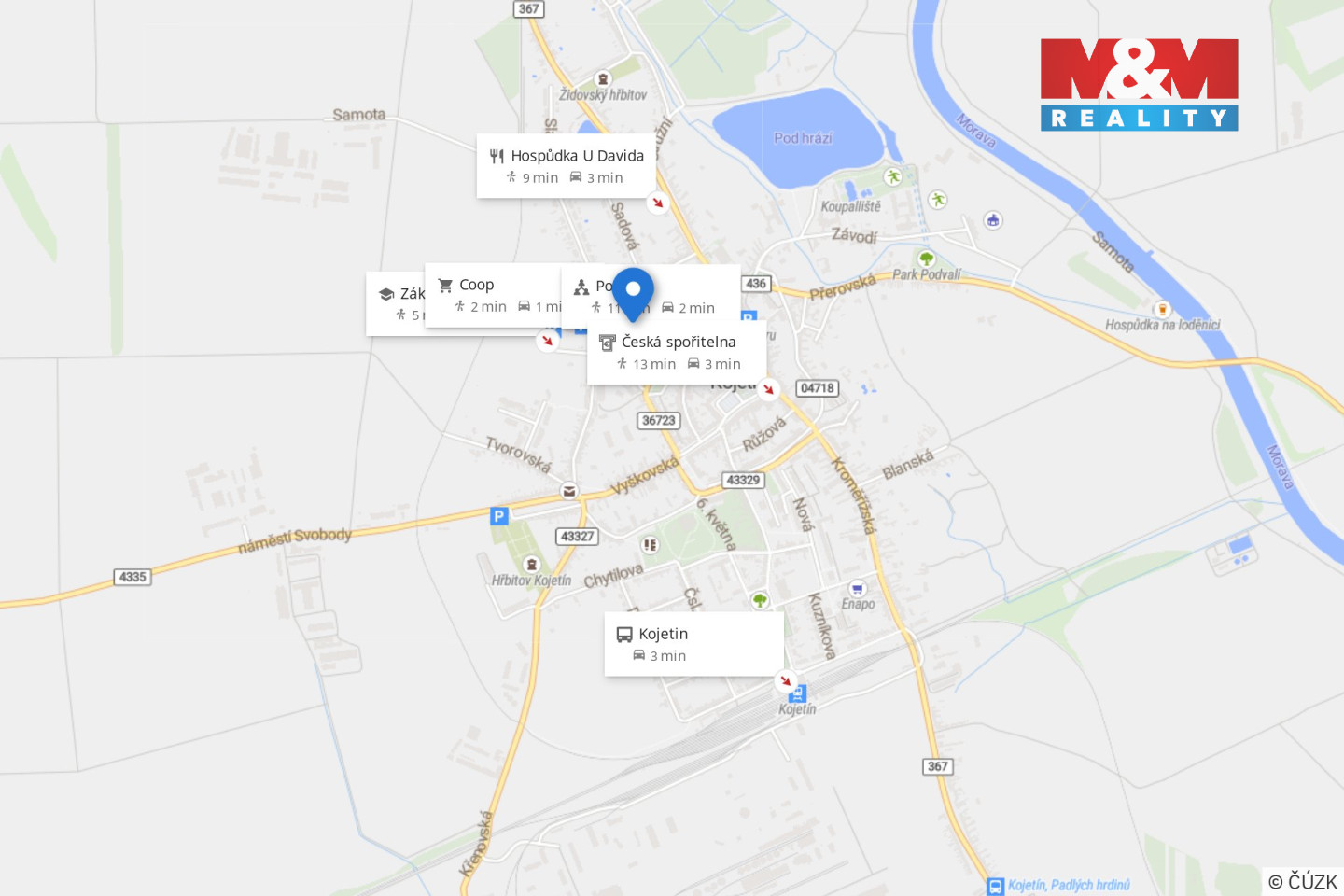 Byt je situovaný v udržovaném domě s dobrou správou a nízkými provozními náklady. Výborné dopravní spojení do Přerova, Kroměříže či Prostějova z něj dělá skvělou volbu pro ty, kteří hledají dostupné a pohodlné bydlení v centru Hané. Díky rostoucí oblibě Kojetína se jedná také o zajímavou investiční příležitost – město láká nové obyvatele a poptávka po pronájmech zde stabilně roste.