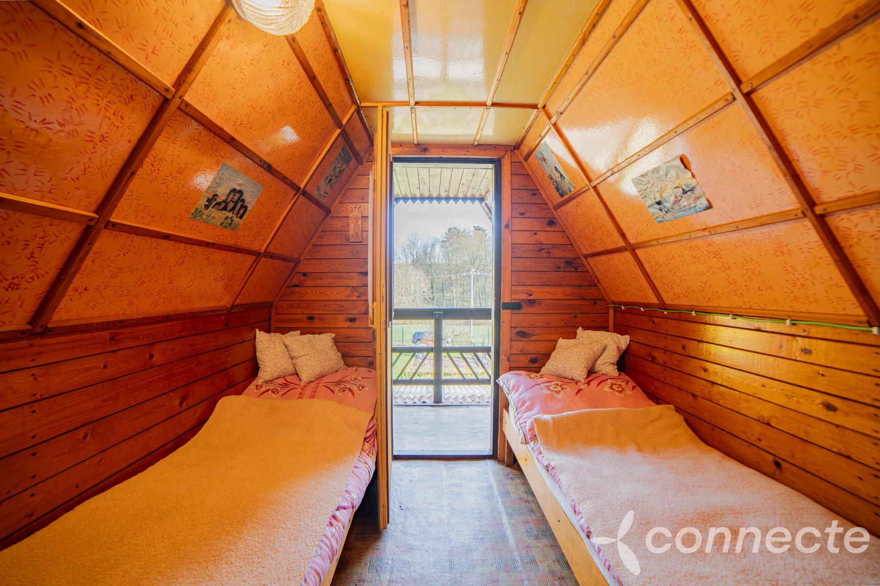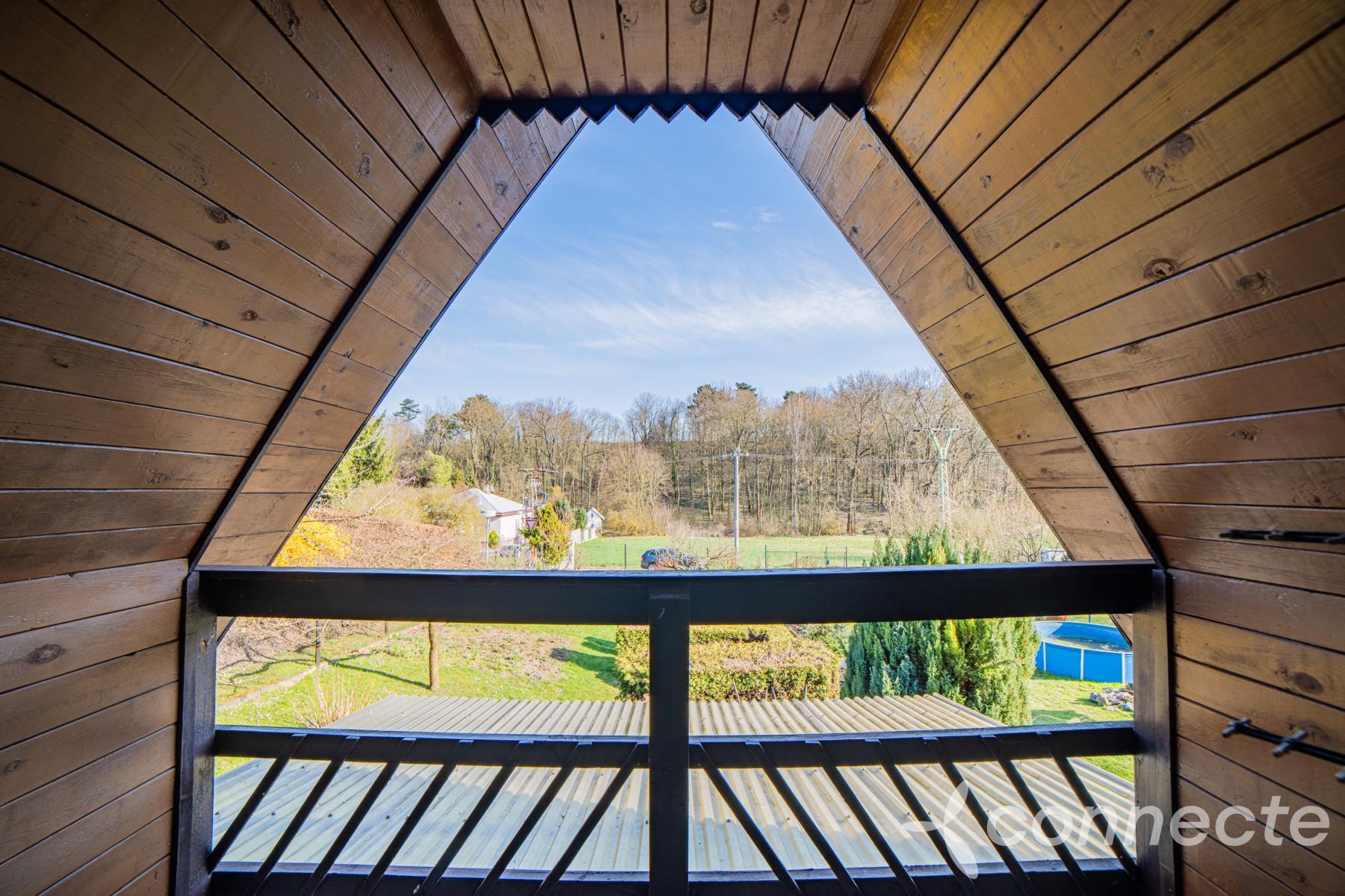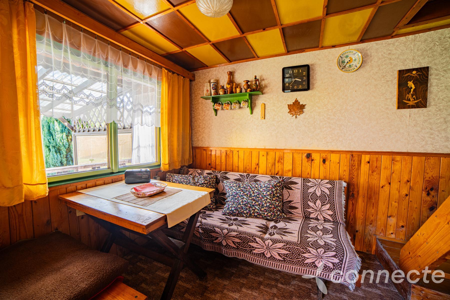 Chata nabízí obývací pokoj, menší kuchyňku a v patře ložnici. Z ložnice je vstup na balkon s výhledem do zahrady a na les na protější straně údolí. Příjemným bonusem je prostorná terasa a zastřešené posezení přímo před chatou. Chata dále disponuje velkým sklepem, který je ideální pro uložení ovoce a zeleniny.
