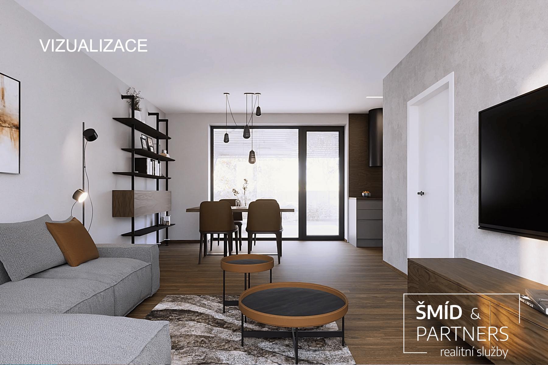 - Obývací pokoj s kuchyňským koutem a vstupem na zahradu