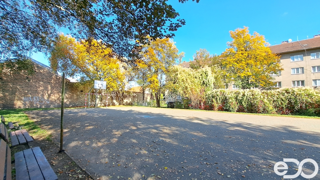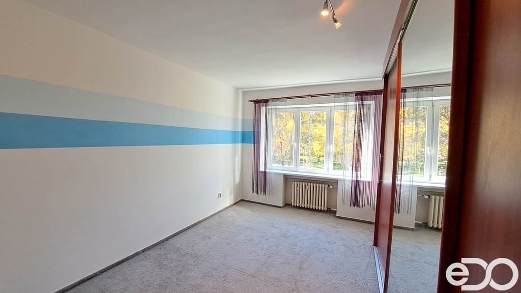 Byt má praktické a klidné uspořádání. Ložnice i obývací pokoj jsou orientovány do vnitrobloku, což zajišťuje klidné bydlení bez rušivého hluku z ulice. V ložnici je k dispozici velká vestavěná skříň s dostatkem úložného prostoru.