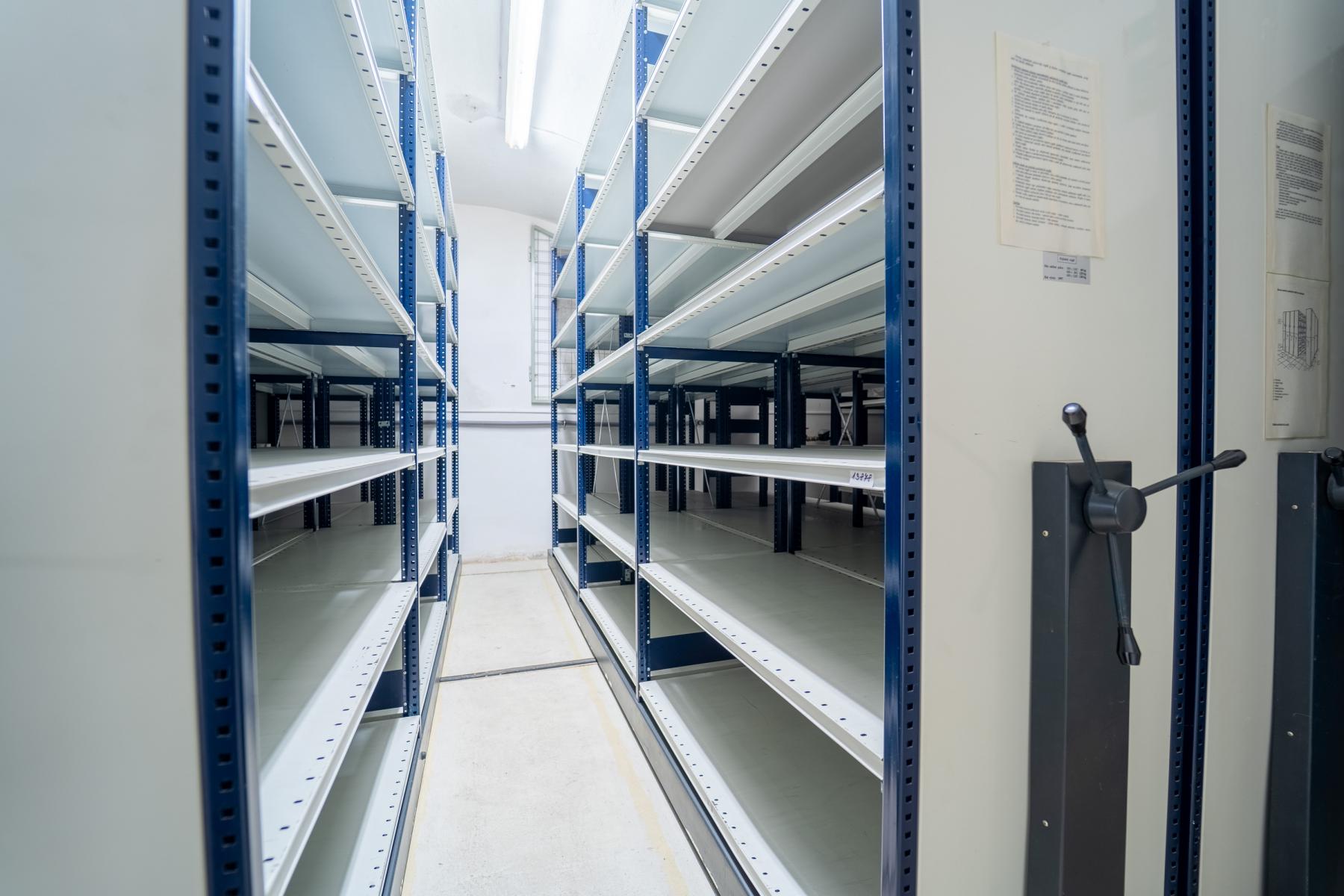 V případě potřeby je možné za příplatek pronajmout také skladové prostory ve sklepě, vhodné jako spisovna. Tyto prostory jsou vybaveny profesionálním regálovým systémem a cena bude stanovena individuálně dle rozsahu využití.