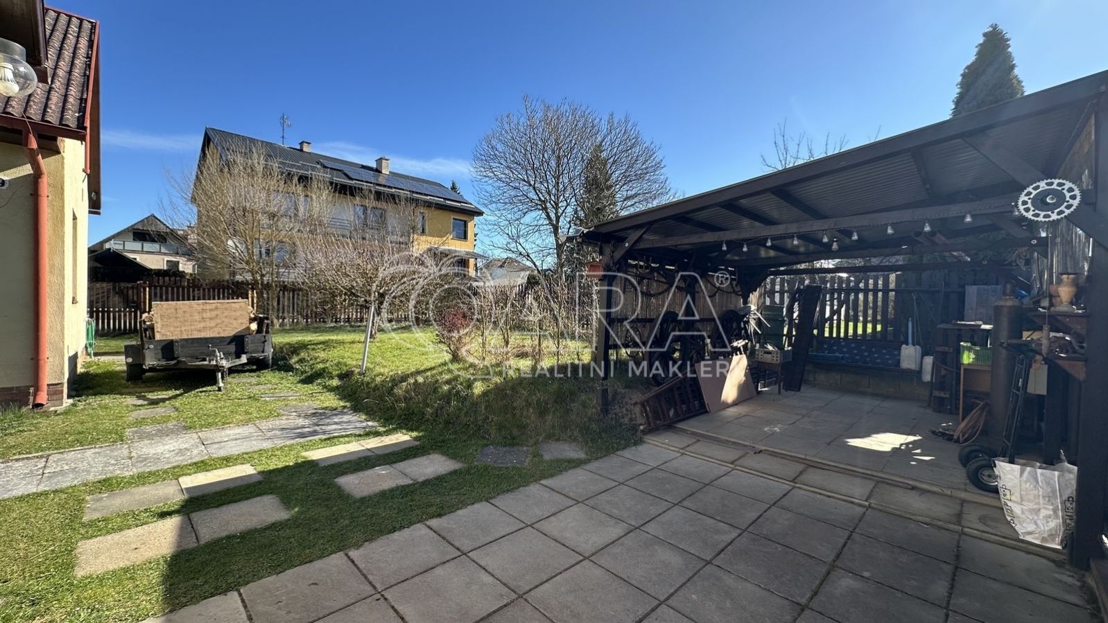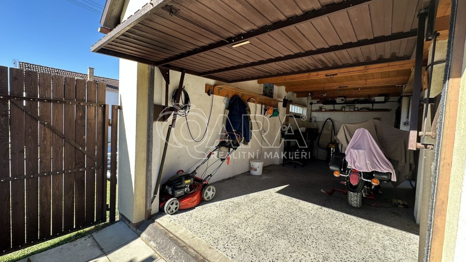 Velkou předností této nabídky je i venkovní zázemí. K domu náleží garáž s dílnou, která přijde vhod nejen motoristům a kutilům, ale i každému, kdo ocení další prostor navíc. Příjemné chvíle venku si můžete užívat pod pergolou a nechybí ani zahrádka, ideální pro pěstování květin, bylinek nebo vlastní zeleniny.