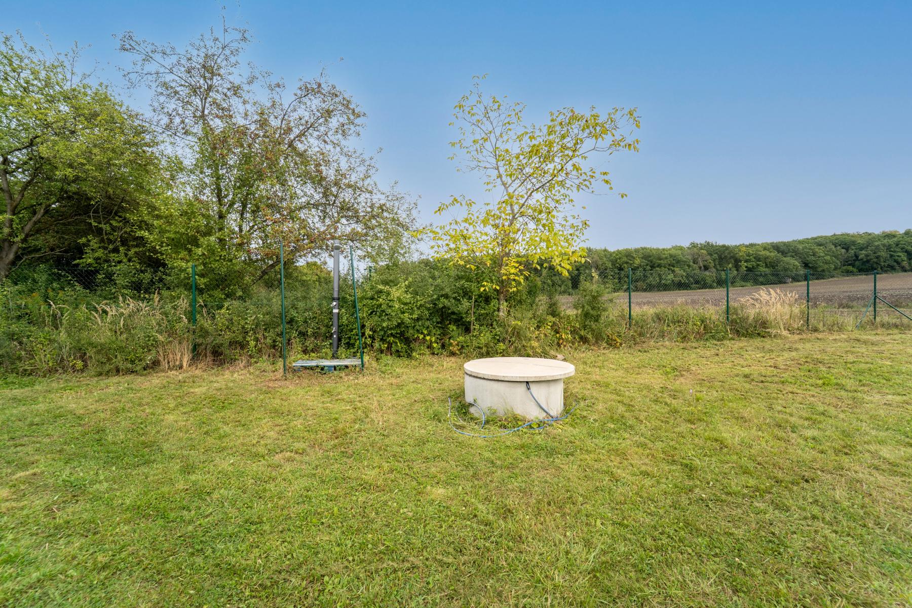 Na pozemku se nachází 2 zkolaudované vrtané studny. Elektřina je přivedena přímo na pozemek. Odpad je třeba řešit jímkou.