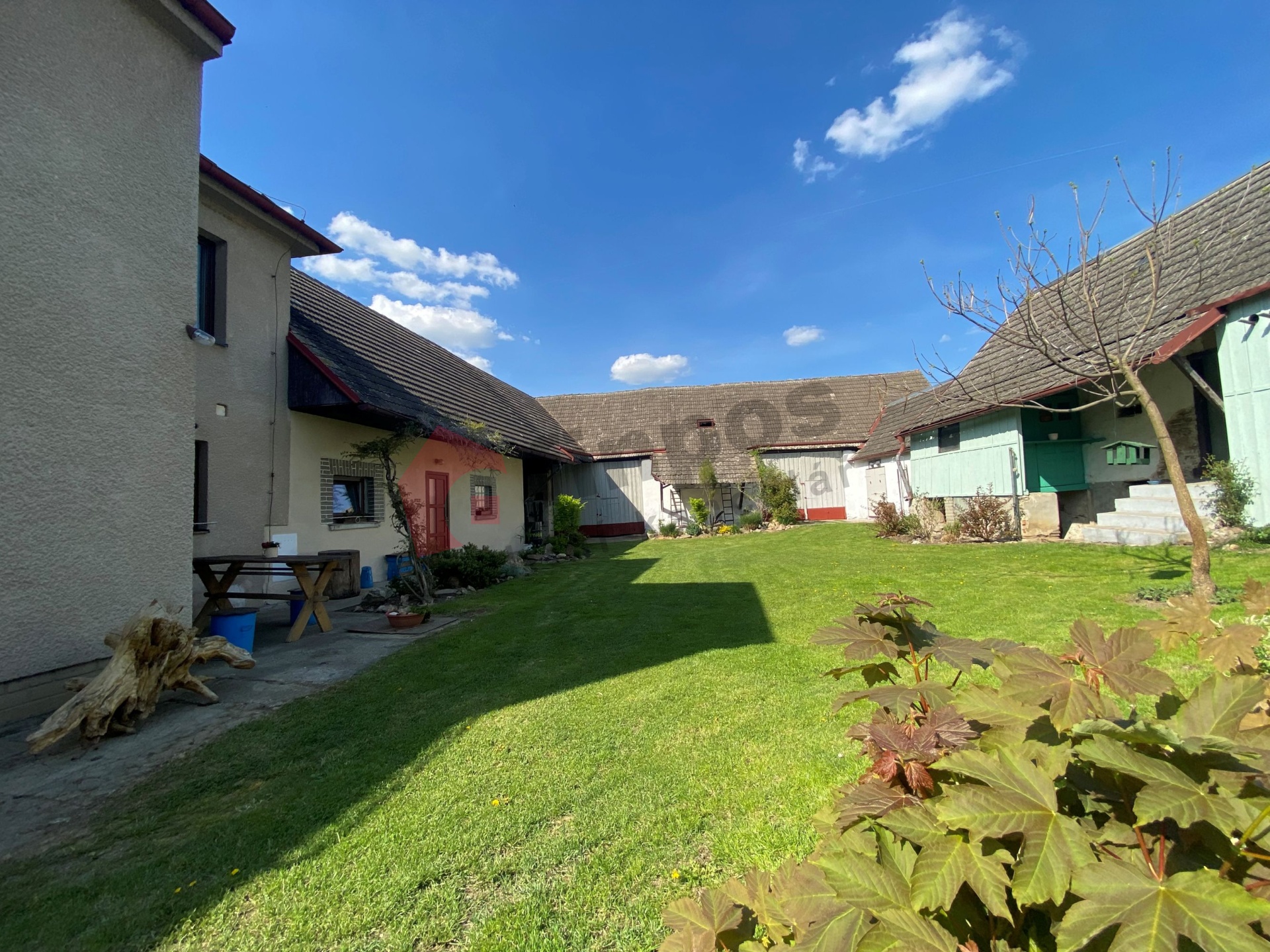 Nemovitost má uzavřený dvůr, který ohraničují hospodářské budovy - dvě prostorné, velmi zachovalé stodoly - v jedné jsou dvě pěkné stáje. Součástí statku je vejminek s nádherným kamenným, původním, klenutým sklepem a dále zastřešené prostory vyzívající k úpravě jako prostorné venkovní posezení. Z vnitřního dvora je také vstup do dílny, dále do dvou dalších chlévů, kde žili vepříci a zděného skladu na dřevo.