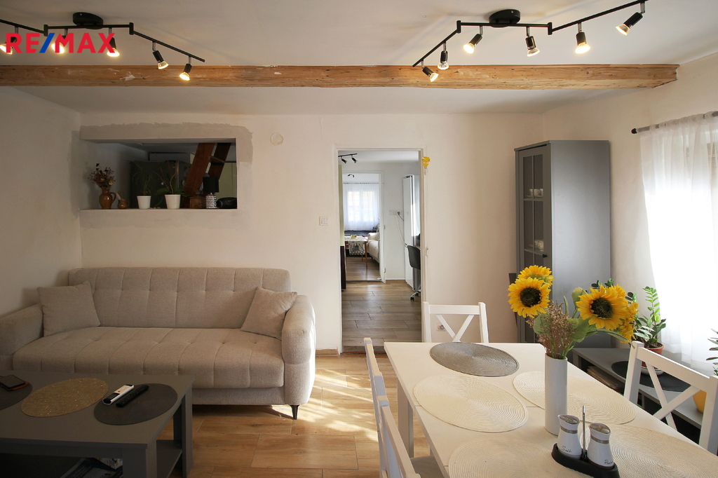 Dům se nachází na oploceném pozemku o rozloze 844 m², 1 NP domu prošlo kompletní rekonstrukcí včetně zhutnění základů a stažení stěn domu pro zpevnění stěn a základů. Dům se zastavěnou plochou 82 m² disponuje třemi pokoji, které nabízejí pohodlné a příjemné bydlení s možností rozšíření o připravený obytný prostor půdy s lodžií, která má výhled na rybník.