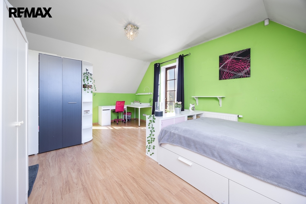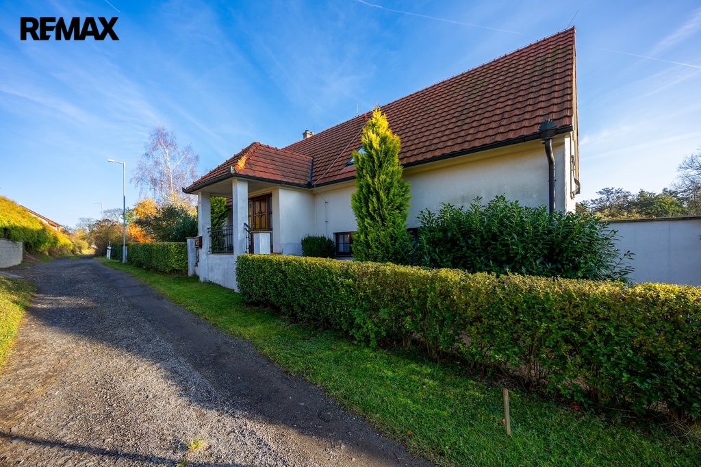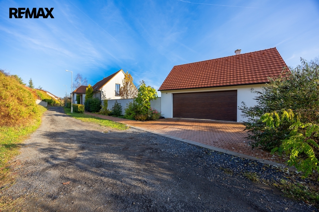 - Velký pozemek se samostatným vjezdem, který umožňuje případné rozdělení parcely.