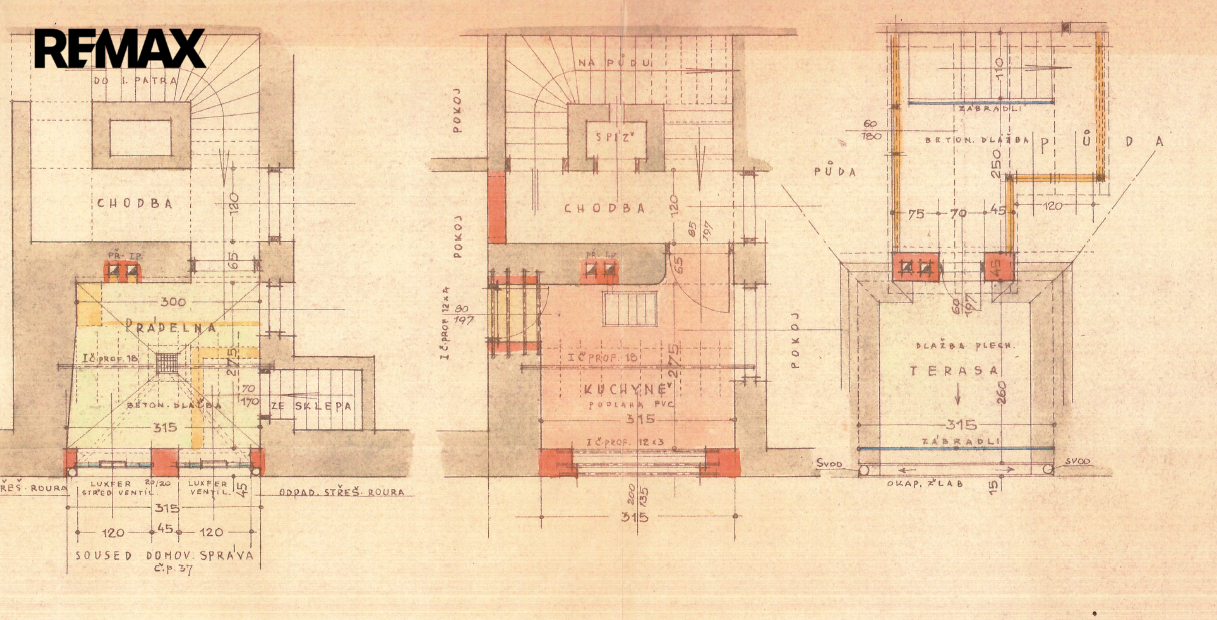 + sklep a půdní prostory. Výměra vnitřních prostor je orientační, překreslené půdorysy budou do inzerátu ještě dodatečně vloženy.