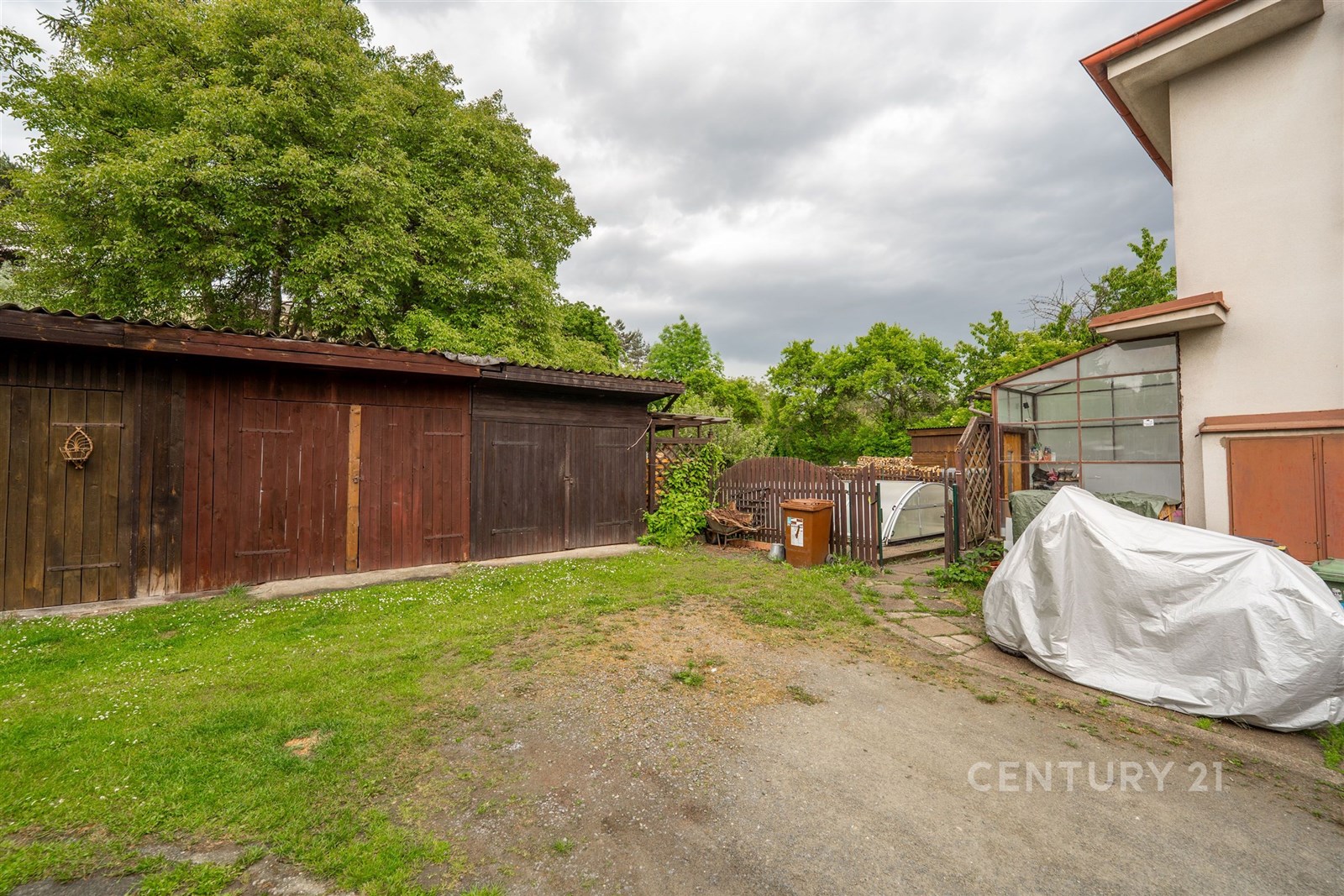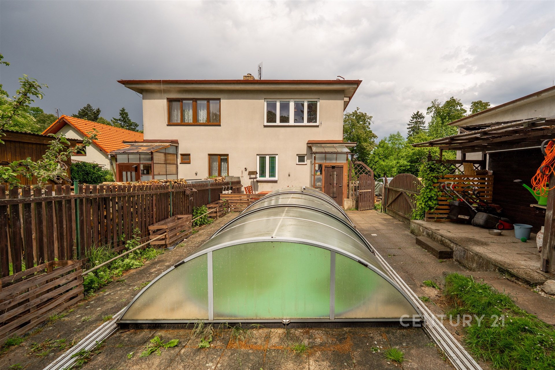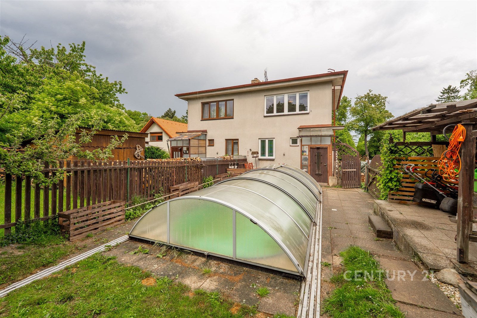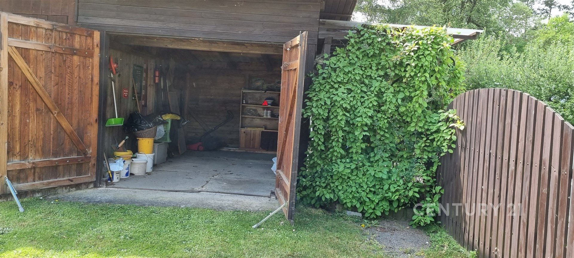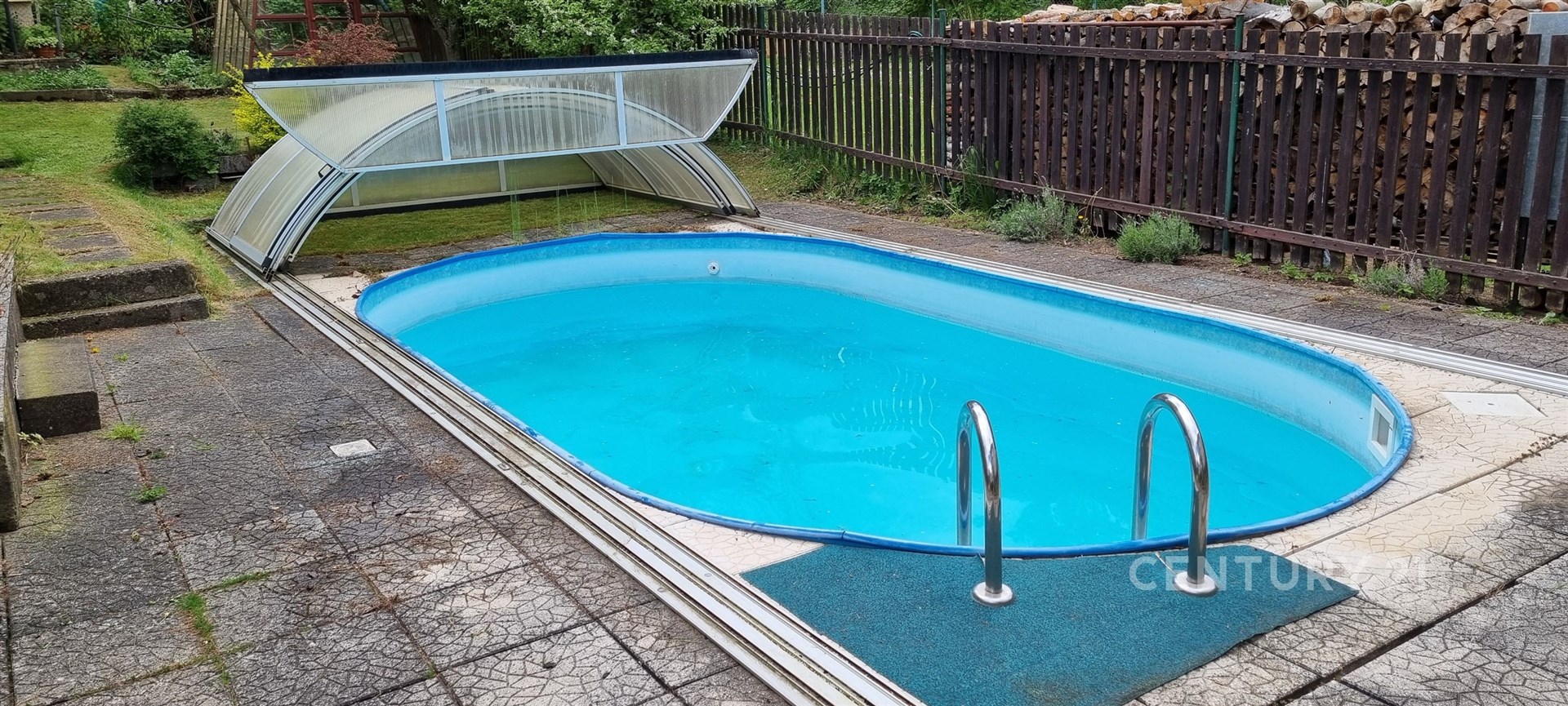Velmi praktická je i garáž, kde můžete pohodlně zaparkovat svůj vůz. Další vozy lze zaparkovat na příjezdové cestě. Milovníci zahradničení si přijdou na své díky praktickému skleníku a plodícím ovocným a kvetoucím stromům. Na pozemku je i vlastní studna to má také nesporné výhody. Součástí je i kůlna. Dům je celkově podsklepen v suterénu se mimo jiné nachází nový kotel na brikety, skimmer k bazénu a dostatek úložného prostoru.