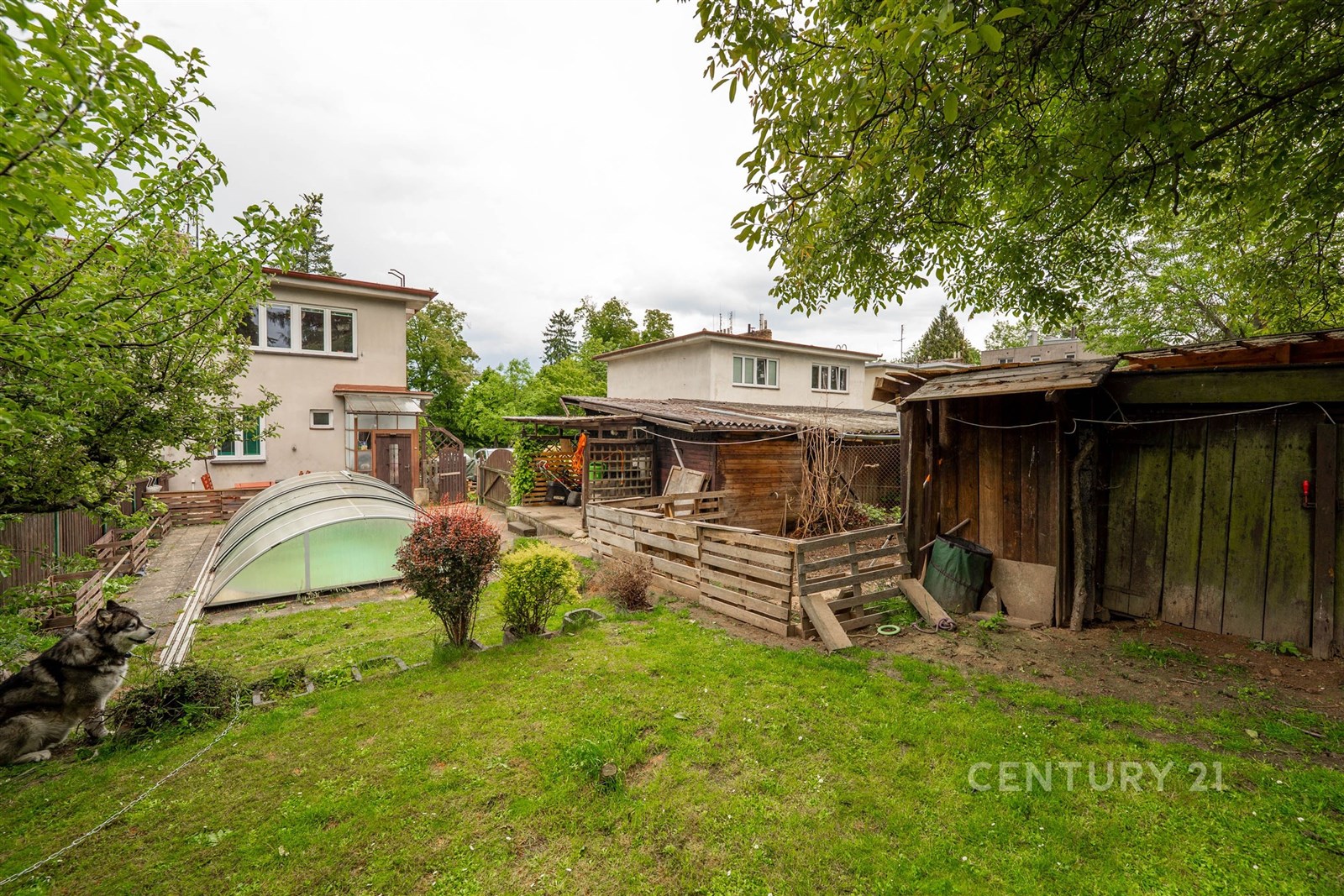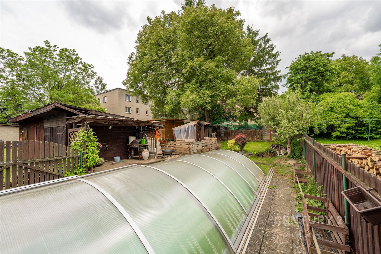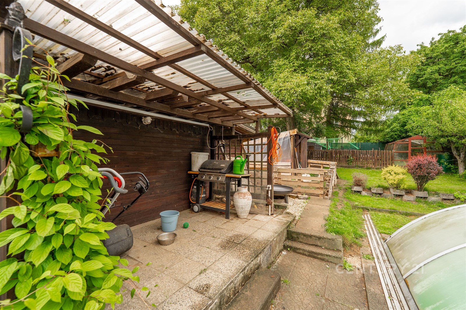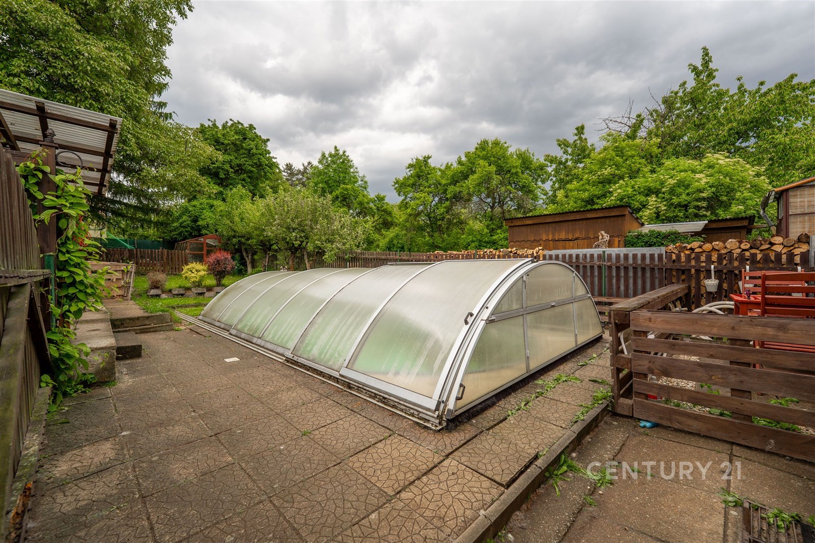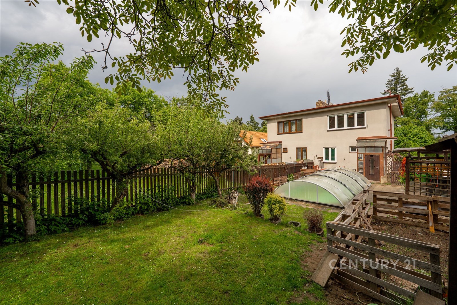 Velmi praktická je i garáž, kde můžete pohodlně zaparkovat svůj vůz. Další vozy lze zaparkovat na příjezdové cestě. Milovníci zahradničení si přijdou na své díky praktickému skleníku a plodícím ovocným a kvetoucím stromům. Na pozemku je i vlastní studna to má také nesporné výhody. Součástí je i kůlna. Dům je celkově podsklepen v suterénu se mimo jiné nachází nový kotel na brikety, skimmer k bazénu a dostatek úložného prostoru.