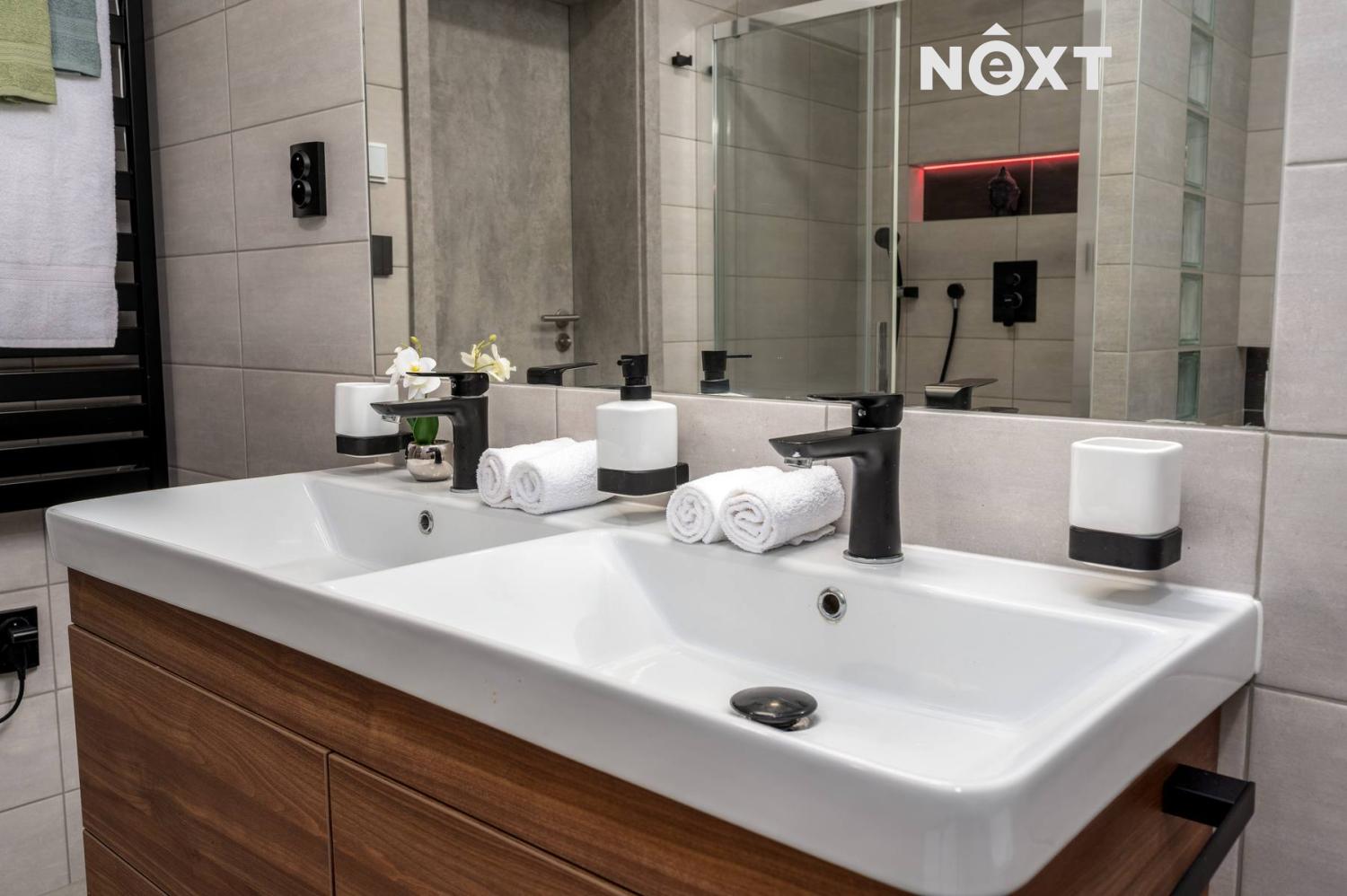 Vytápění zajištěno pomocí elektrického podlahového vytápění s chytrými termostaty, ohřev vody bojlerem 200 l Dražice.