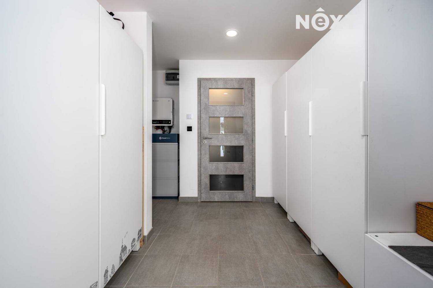 V domě je instalována rekuperační jednotka Zehnder ComfoAir Q 350, solární panely, předokenní vestavěné elektrické žaluzie.