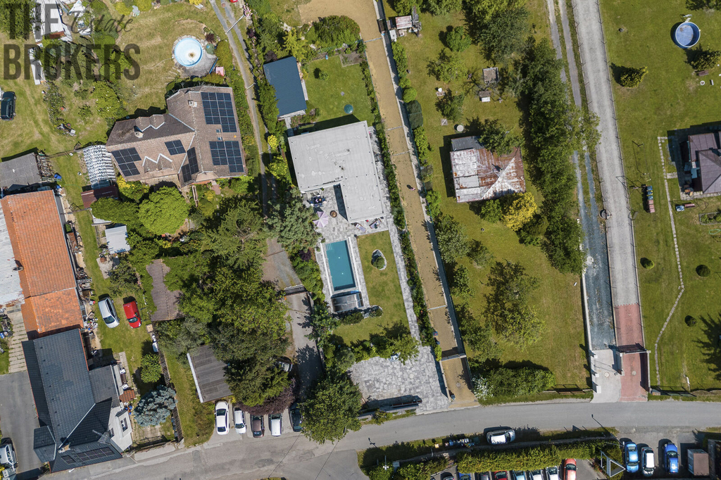 Tento zděný bungalov s plochou střechou a velkorysým prosklením (ve třech místnostech jsou stěny plně prosklené, v obývacím pokoji je pak HS portál) vás uchvátí svým moderním designem a funkčností. Všechna okna jsou opatřena předokenními roletami, což zajišťuje maximální komfort a bezpečí.