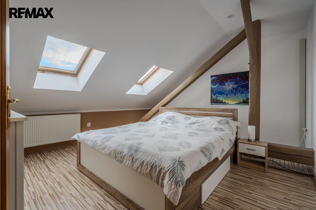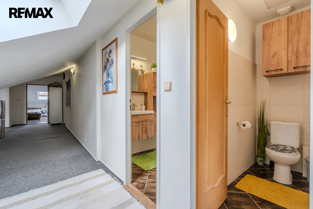 Proběhla rekonstrukce bytu ve 2.NP, původní byt 3+1 s příslušenstvím je nyní 2+1, 2x hala, WC, koupelna, šatna a balkon s nádherným výhledem do zahrady (128,03 + balkon 9,61m2).