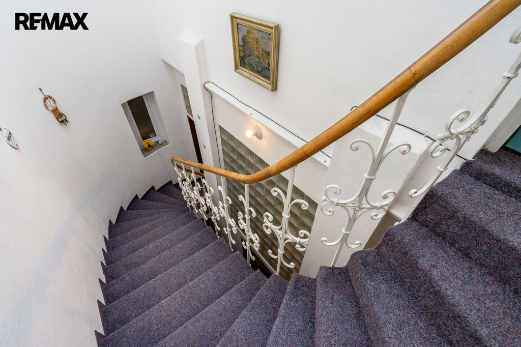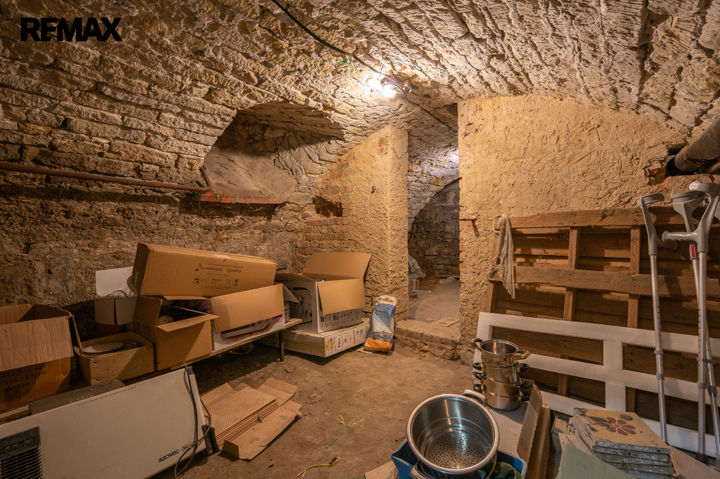 Dům je o 3. podlažích a je z velké části podsklepen.