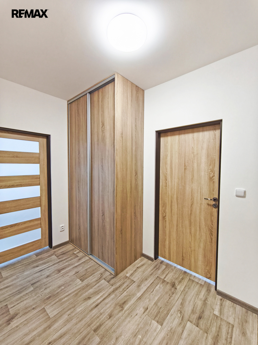 Bytová jednotka se nachází v 2. patře novostavbě bytového domu, bez výtahu. Byt vám nabízí prostornou vstupní chodbu včetně vestavěné šatní skříně, komoru/šatnu s regály, prostornou koupelnu 7 m2 (se sprchovým koutem, toaletou, umyvadlem a místem na pračku a sušičku). Dále ložnici 12 m2 a obývací pokoj s kuchyňským a jídelním koutem 32 m2. Kuchyně vybavena vestavěnými spotřebiči: sklokeramická varná deska, trouba a digestoř. Byt slunný a světlý, velmi vkusně zařízený, minimálně užívaný necelé 2 roky, nabízí klidné a dlouhodobé bydlení. Bytový dům velmi klidný o dvou bytech a dvou nebytových prostorech, které jsou s nerušícím provozem (kanceláře). Vytápění a ohřev vody zajišťuje tepelné čerpadlo v budově. Internet zaveden kabel od místního dodavatele.