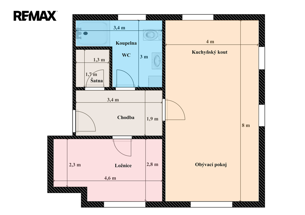 - Dispozice bytu: 2+kk