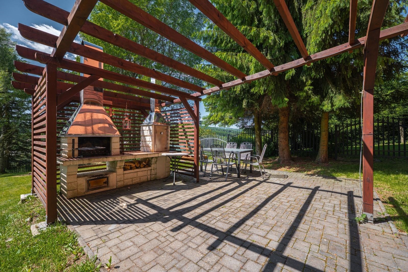 Velkou předností je zahrada s krásnými výhledy do okolní horské krajiny. Nabízí pergolu, venkovní krb, udírnu a dostatek prostoru pro posezení s rodinou, přáteli i pro dětské hry. Dům i zahrada poskytují dostatek soukromí a zároveň otevřené výhledy do přírody.