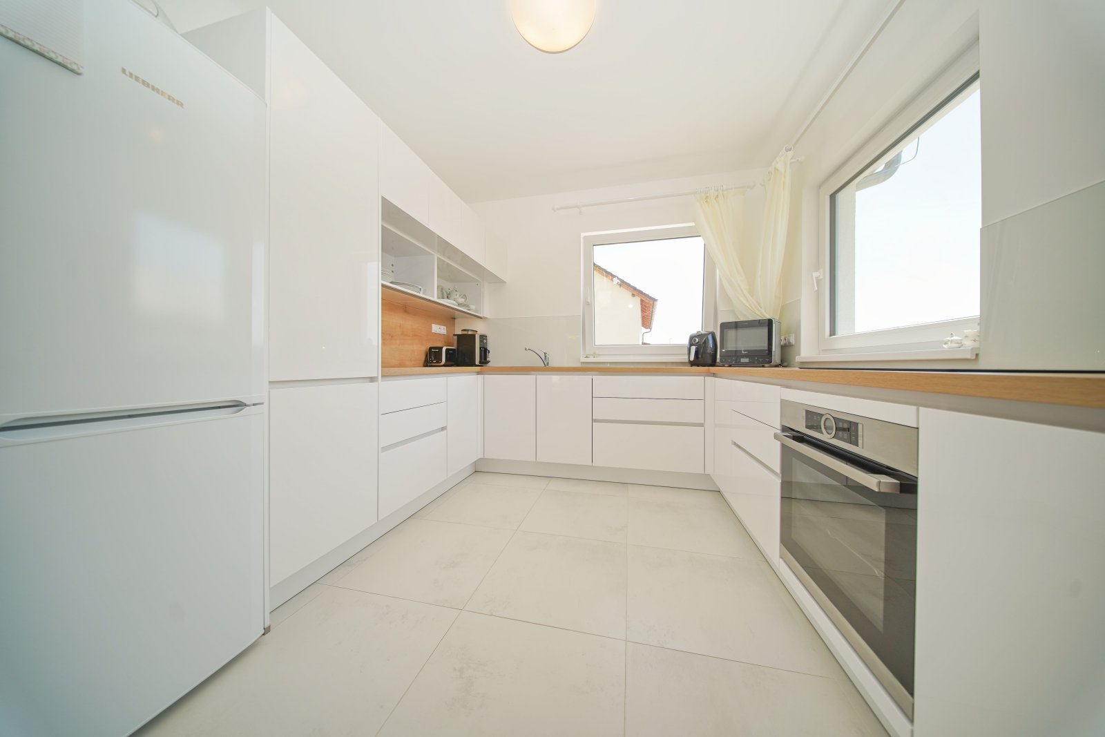 V domě prostorný a světlý obývací pokoj se vstupem na dřevěnou terasu, okny prosvětlená kuchyně včetně linky a spotřebičů, dvě ložnice, koupelna se sprchovým koutem, toaletou a topným žebříkem, vstupní chodba, technická místnost s umyvadlem a pračkou. Dům se prodává zařízený viz. foto.