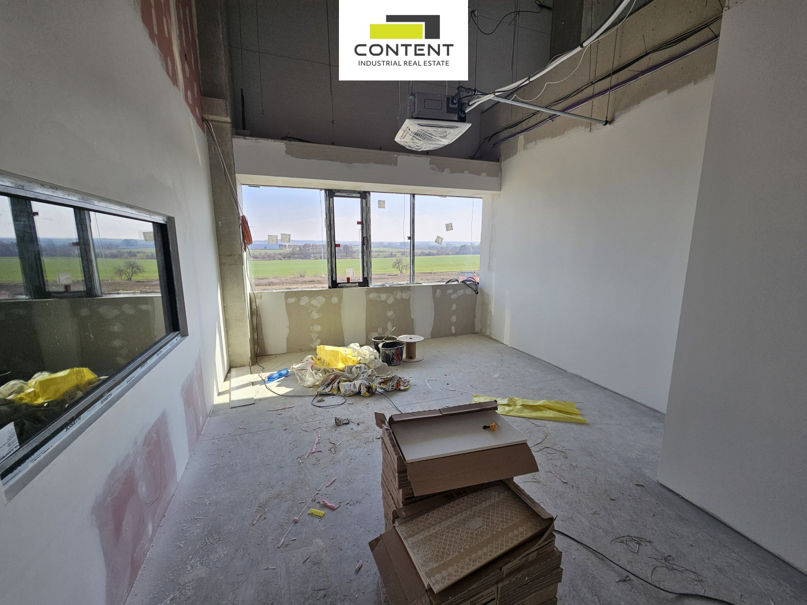 Novostavba samostatné industriální budovy před dokončením: