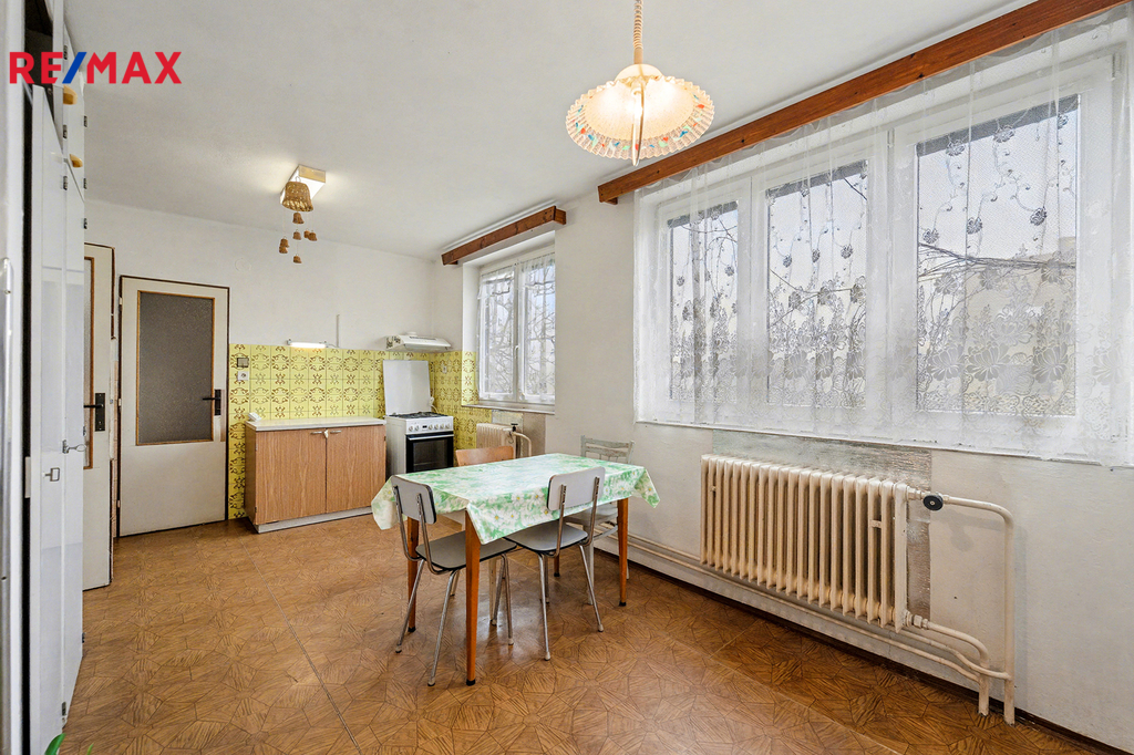 Nabízíme Vám ke koupi rodinný dům v těsné blízkosti hory Říp o celkové užitné ploše cca 132 m2 + garáž a suterén. Dům kolaudovaný v roce 1990 je obyvatelný, ale je určený k celkové rekonstrukci. Má potenciál k rozšíření o další obytné patro jako okolní rodinné domy. Velkou výhodou je také, že skoro celý dům je podsklepen. Dům disponuje taky garáží do které je přístup ze suterénu. Minimální známky vlhkosti.