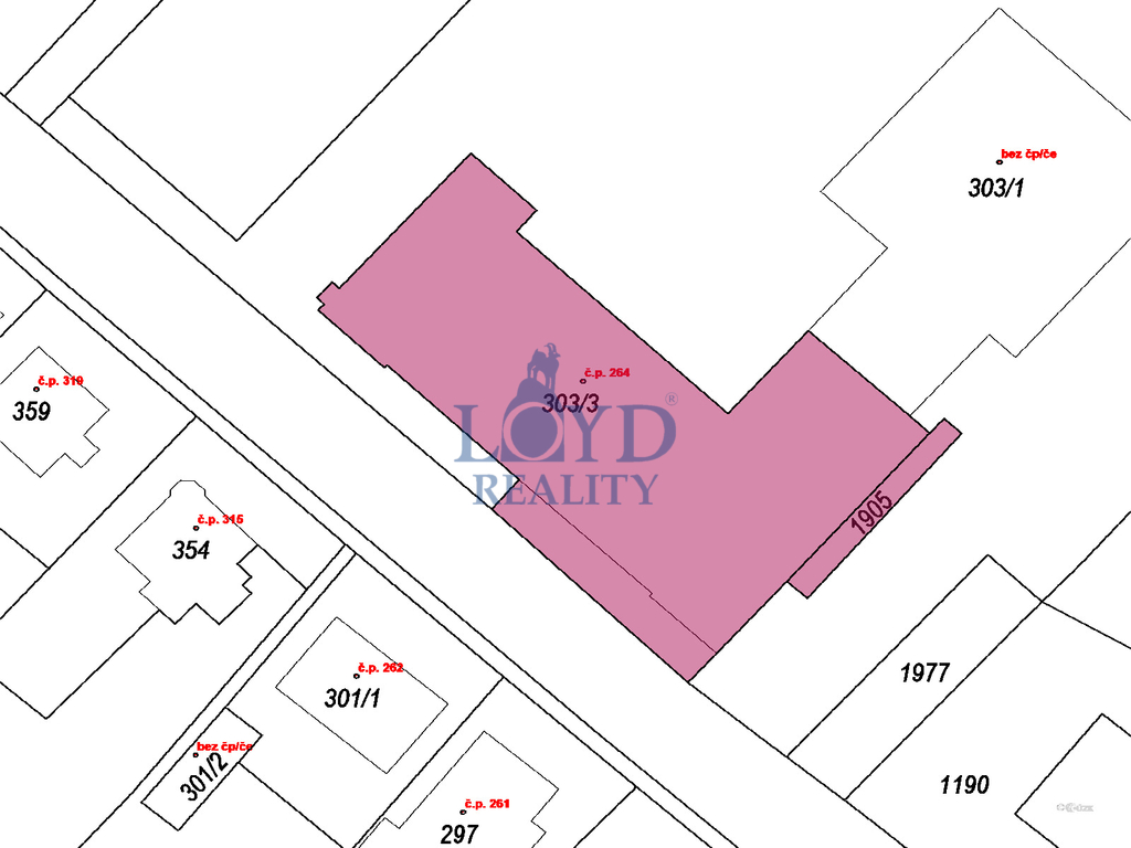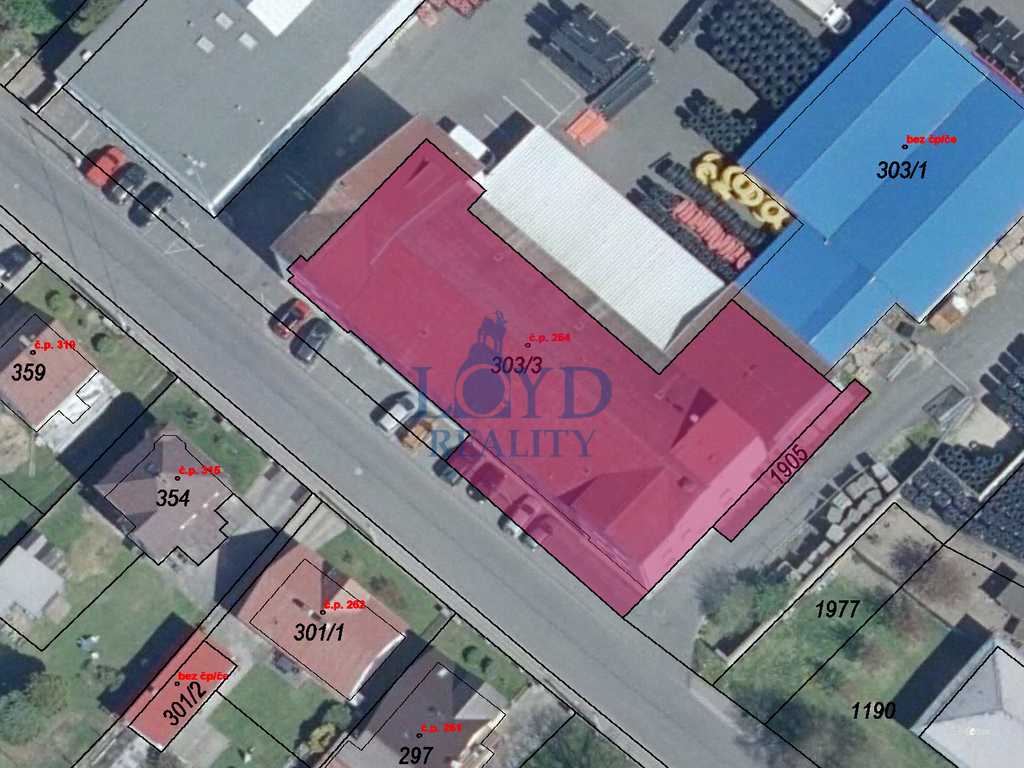 Celková plocha parcel 1.014 m2, zastavěná plocha 892 m2.