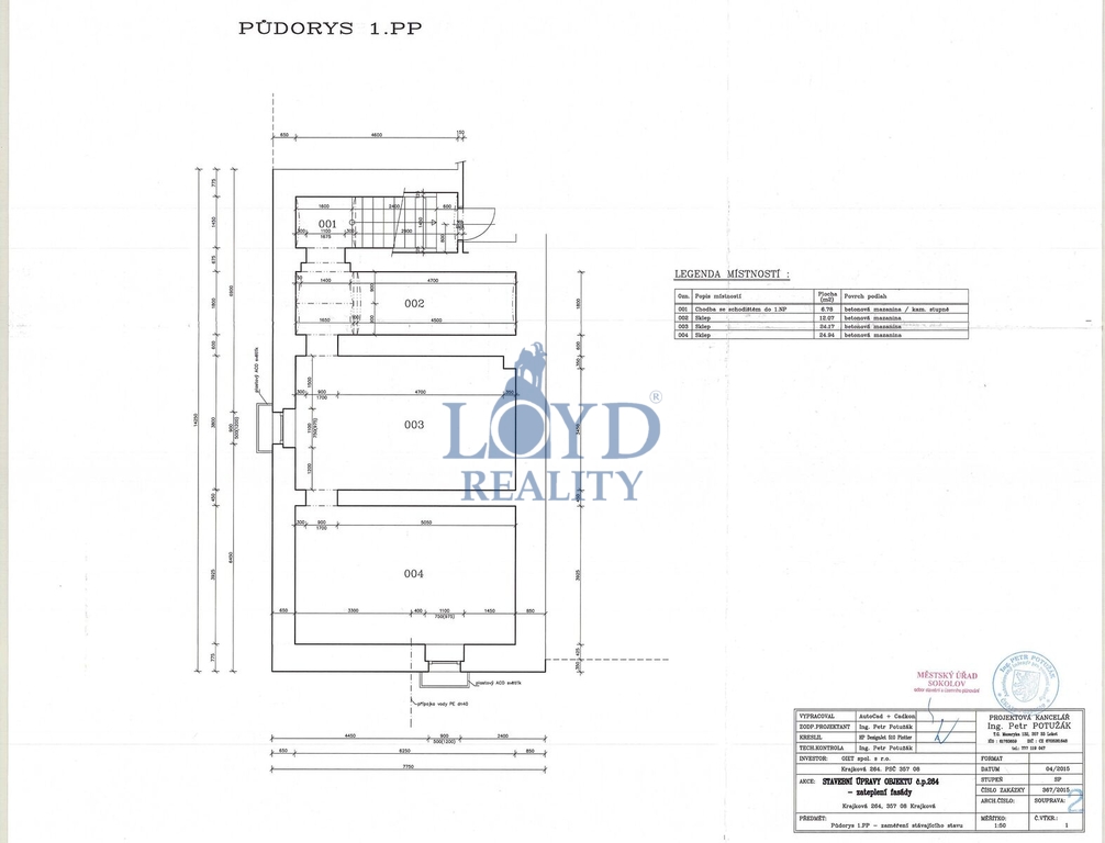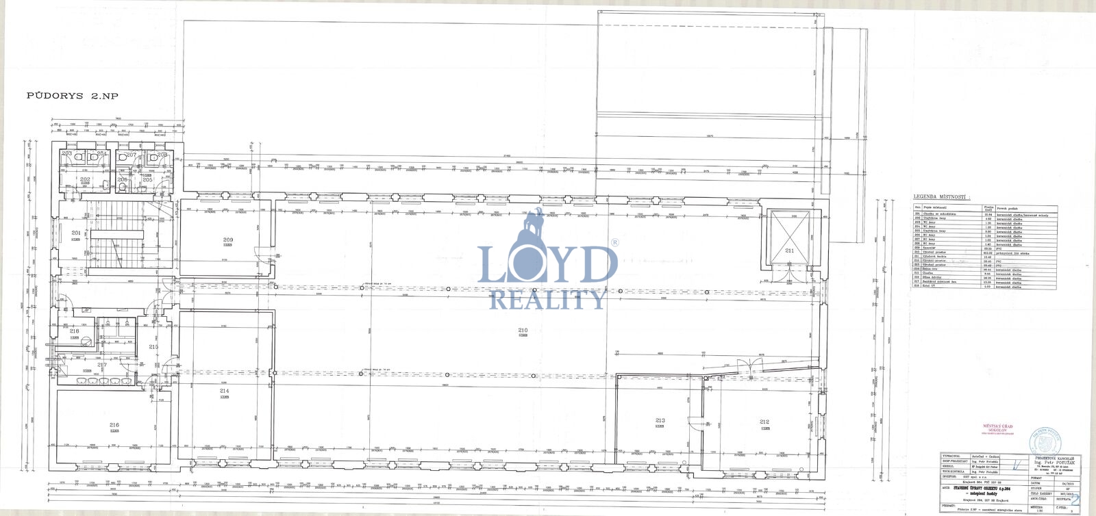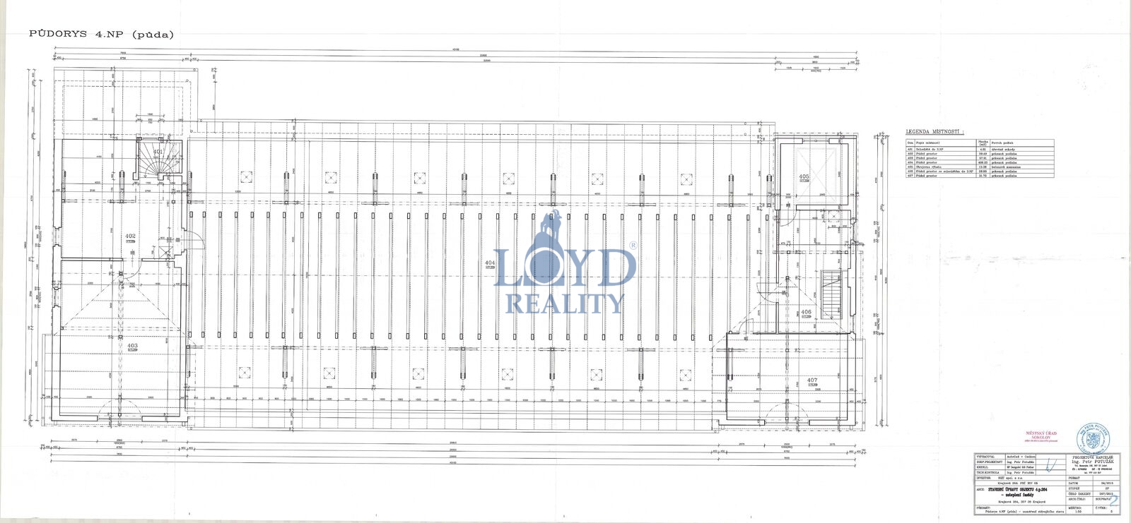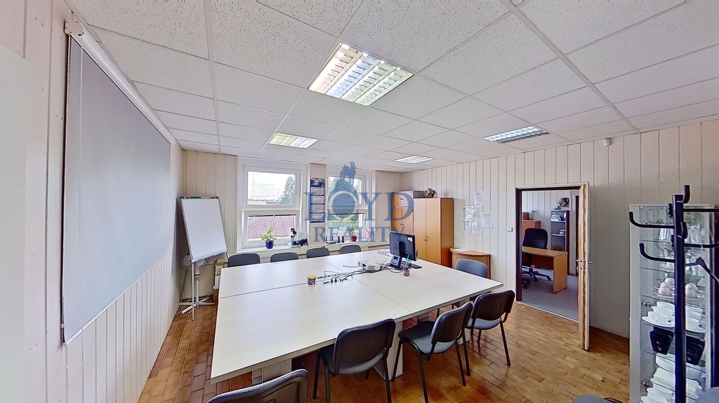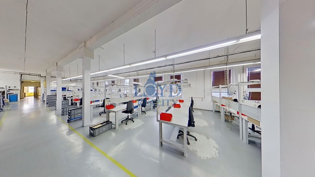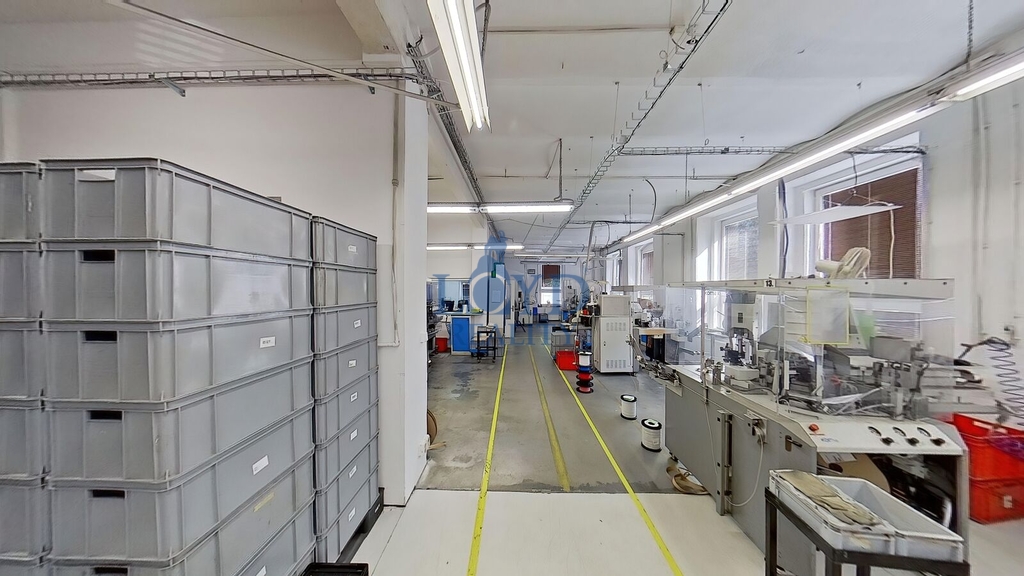 1. PP – pod částí objektu. 1. NP – vchod, výrobní hala, skladové haly, kompresorovna, chodba, šatny umývárna a WC. 2. a 3. NP – výrobní hala, skladové haly, kanceláře, chodba, šatny umývárna a WC. 4. NP – půda, sklady. Sedlová střecha, krytina asfaltový šindel, využitelné podkroví o dostatečné výšce.