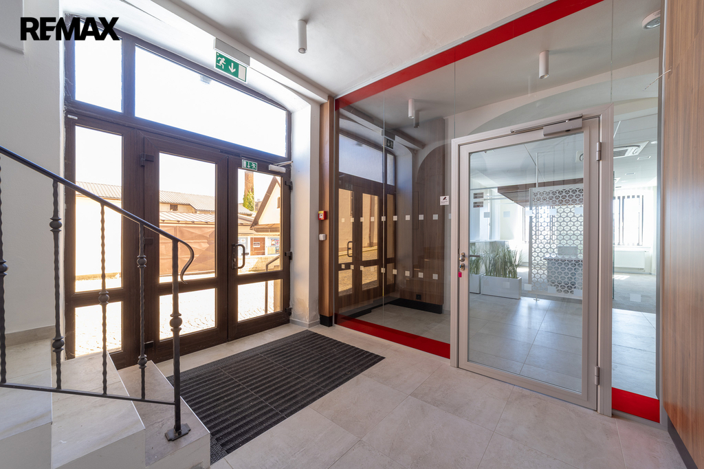 Praktičnost podtrhuje vlastní parkovací plocha přímo vedle domu, což je v centru města neocenitelná výhoda pro klienty, zaměstnance i obyvatele.