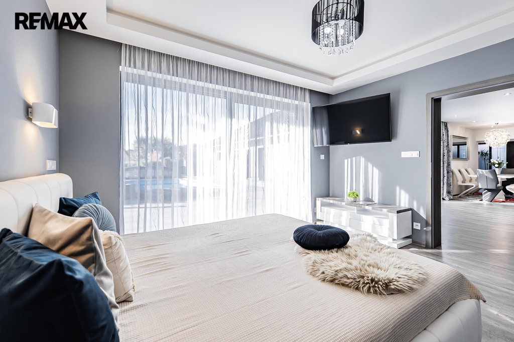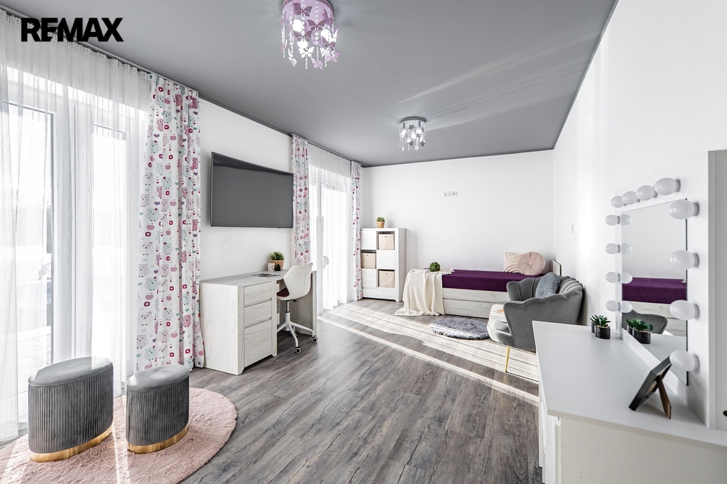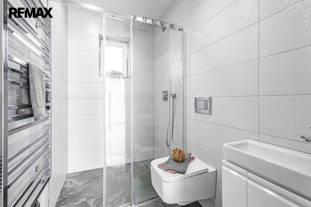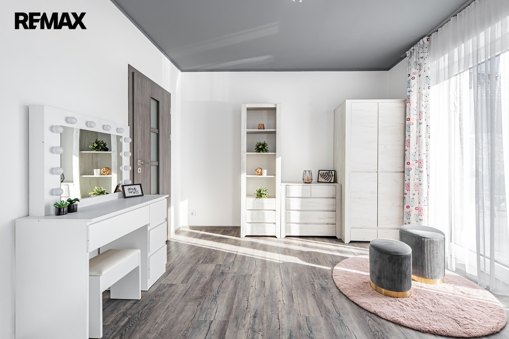 Skvělé izolační vlastnosti zaručí plastová okna s trojskly, vchodové dveře a posuvné portály jsou pak vyrobeny z hliníku. Dveře značky SAPELI a vinylové podlahy dodávají interiéru moderní a elegantní vzhled.