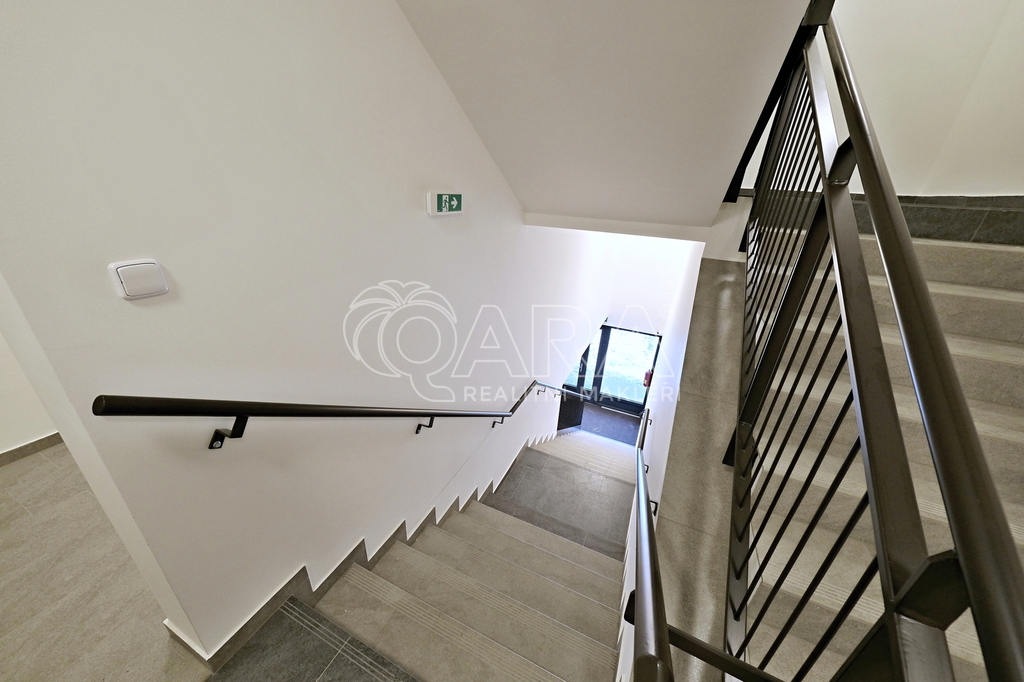 Zatím nikým neobývaný prostor je velmi vkusně a prakticky vybaven. Neutrální tóny umožňují kombinaci s barvami dle vlastního vkusu, kvalitní použité materiály a moderní tvary pak vyvolávají pocit příjemného nadstandardu.