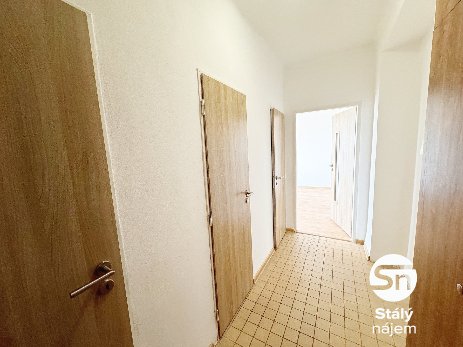 Dispozice zahrnuje kuchyni s bílou linkou a sporákem. Ostatní pokoje jsou nevybavené, připravené pro váš vlastní nábytek. V koupelně je vana, toaleta je oddělená. Praktickým prvkem je vnitřní komora s přípojkou na pračku a prostorná předsíň.