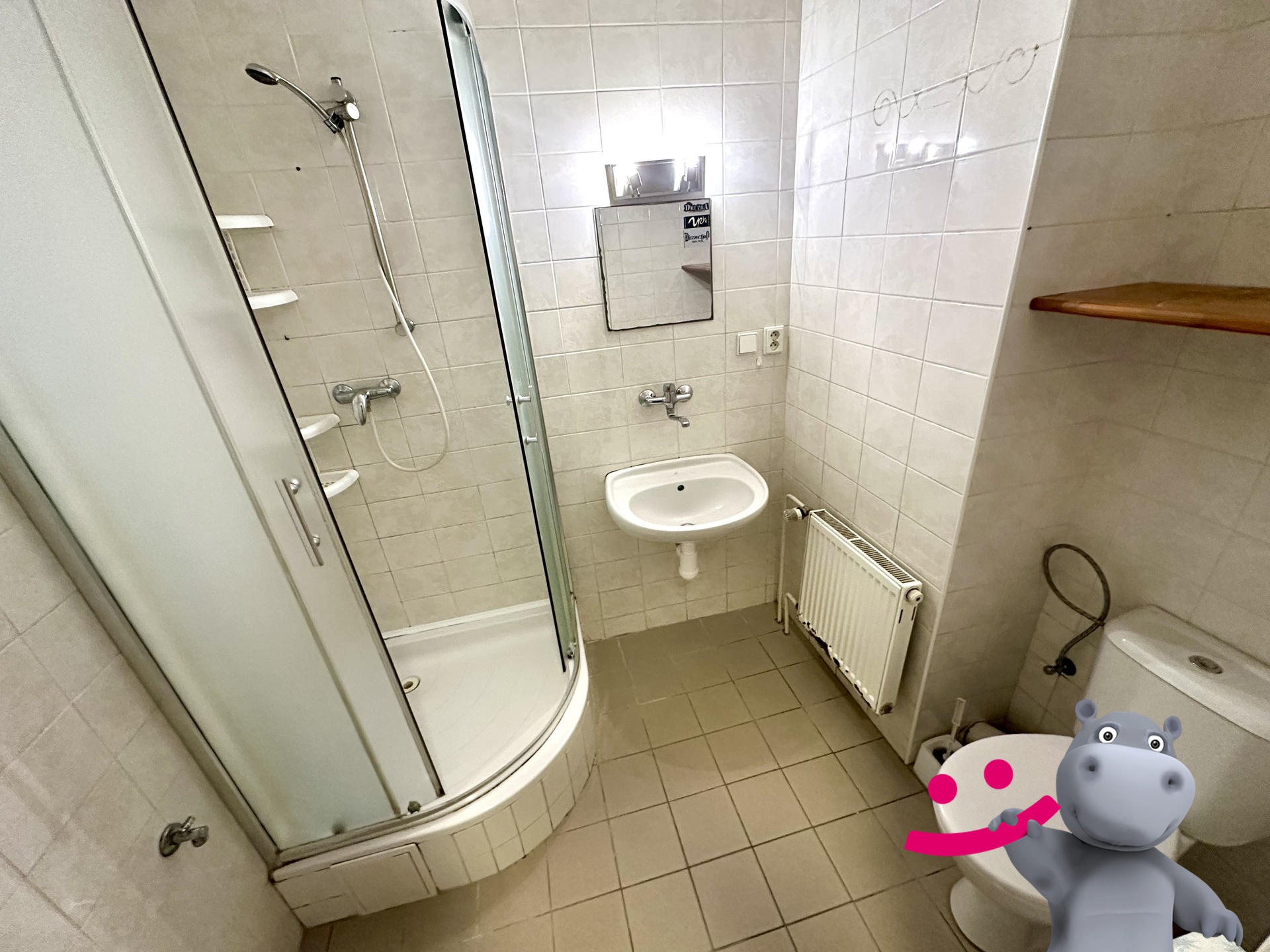 Koupelna disponuje sprchovým koutem a je řešena společně s toaletou. Prostor na pračku je vedle sprch.koutu.